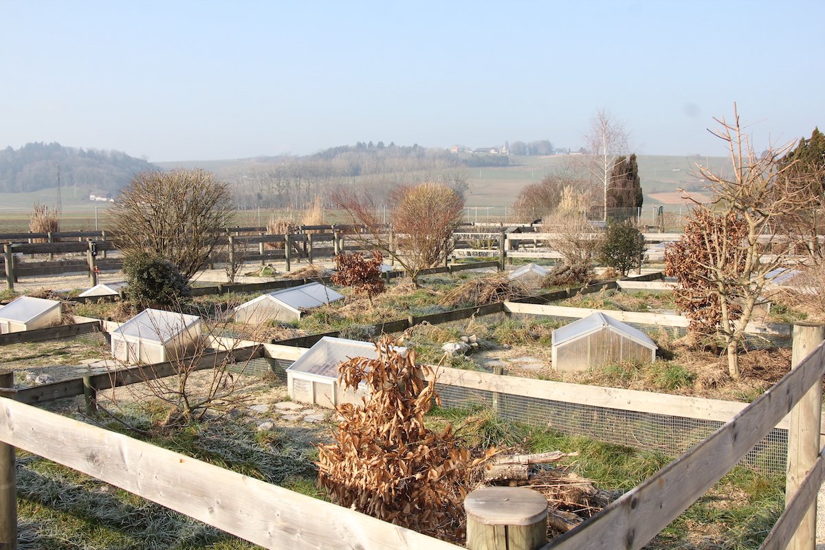 Die mediterranen Landschildkröten würden sich in den Boden unter den entsprechenden Häuschen vergraben, sagt Rolf Brun. Der Experte betont: «Es ist wichtig, dass sie im Winter geschützt sind.» Er beschreibt auch gleich, wie so ein Schildkrötenhaus aussehen muss: «Doppelstegplatten stehen auf einem gemauerten Fundament, das 60 Zentimeter bis zu einem Meter tief ins Erdreich reicht. Unten befindet sich ein feinmaschiges Gitter.» Das Substrat sollte aus einem Gemisch aus Erde und Sand bestehen. «Die Schildkröten graben sich dann meist natürlicherweise an dieser Stelle ein.» Wenn alle eingegraben sind, füllt Brun den Luftraum bis zum Dach mit trockenem Laub und verschliesst die Eingangstüre. Bei sonnigen Tagen hebt er die Decke des Häuschens an oder legt eine Decke darüber, damit sich der Innenraum nicht zu fest erwärmt. Im Häuschen sind sie vor Kälte und Fressfeinden wie Mäusen und Mardern geschützt.
