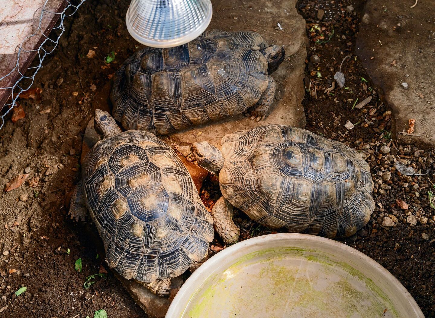 Um den Schildkröten eine mediterrane Umgebung zu schaffen, sind Leuchten aus dem Zoofachhandel unerlässlich. Sie geben Wärme, kombiniert mit Helligkeit ab. Rolf Brun betont: «Schildkröten verbinden Licht immer mit Wärme. Ein Wärmestrahler reicht darum nicht aus!» Eben wie im Mittelmeerraum, wo das gleissende Sonnenlicht auf steinige Erde trifft und sie erwärmt, sodass den Schildkröten wohlig ist. «Wenn die Sonne am Tag scheint, sollte die Wärmelampe abgeschaltet werden.»