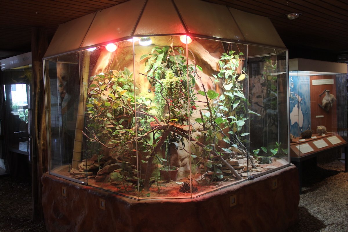 Wie beim Aquarium lassen sich auch beim Terrarium verschiedene Biotope gestalten. Es kommt darauf an, welche Arten in einem Terrarium gepflegt werden. Handelt es sich um Savannen- oder Wüstenbewohner wie beispielsweise Dornschwanz- oder Bartagamen oder um Pfeilgiftfrösche aus dem tropischen Regenwald? Ein Wüstenterrarium ist von der Pflege her einfacher. Schimmelnder Boden und beschlagene Scheiben sind da kein Problem. Wenn ein Regenwaldterrarium von Anfang an richtig geplant wird, ist aber auch dieses Biotop äusserst reizvoll. Dank Filterpumpen lassen sich kleine Wasserfälle und -läufe einbauen, epiphytische Pflanzen gedeihen im Mikroklima hinter Glas besonders gut. Wichtig zu wissen bei der Grössenwahl eines Terrariums ist auch, ob sich ein zukünftiger Terrarienbewohner vom Boden in die Höhe bewegt, wie ein Gecko oder ob er insbesondere Fläche benötigt wie eine Agame. Je nachdem muss ein hohes oder ein in die Breite gebautes Terrarium gewählt werden.