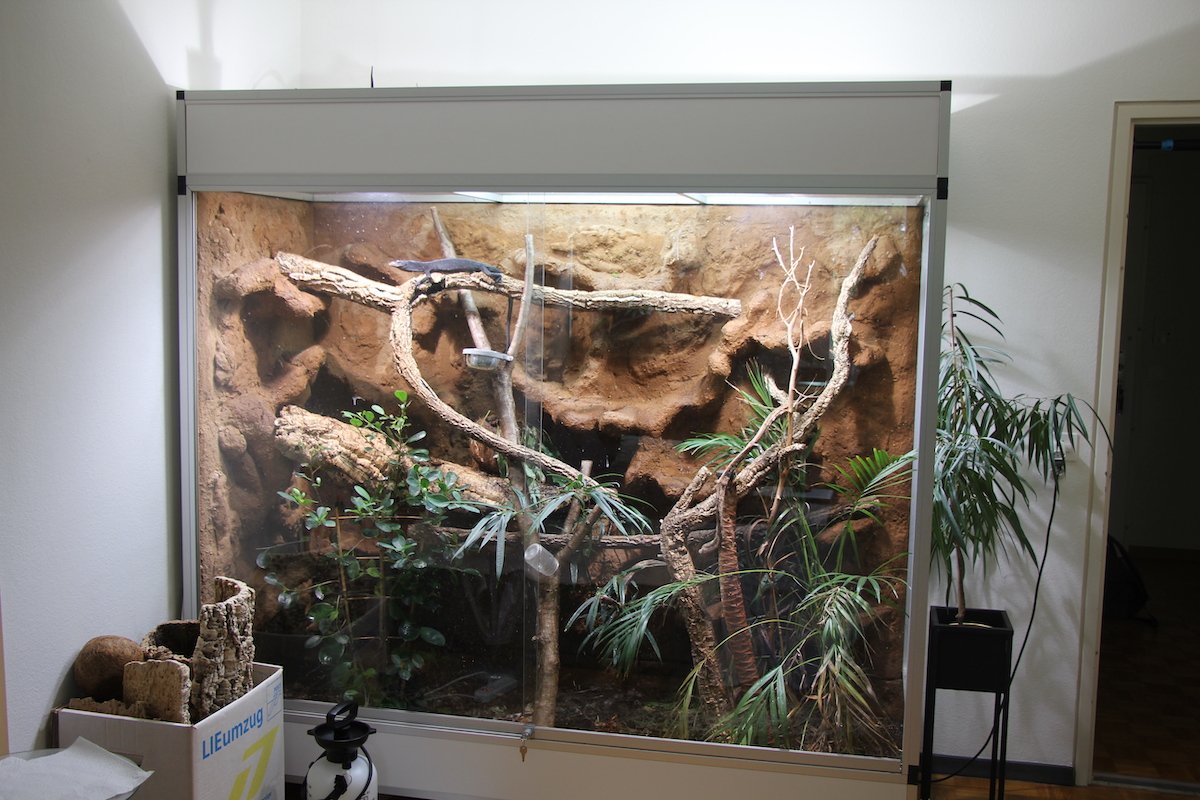 Der Artenreichtum um Neuguinea sei enorm, zahlreiche Endemiten lebten dort. Dazu gehört auch sein besonderer Pflegling. Endemiten sind Tierarten, die in einem beschränkten geographischen Gebiet leben. Im Falle des Schwarzen Baumwarans sind es die Inseln Tanahbesar, Wammer, Kobroor und Trangan. Die Namen erzählen von schäumendem Meer, Korallenriffen, Sandstrand, Palmen und üppigem Grün unter Tropensonne. Ähnlich sieht es im Terrarium in Zürich aus, das grösser als ein…