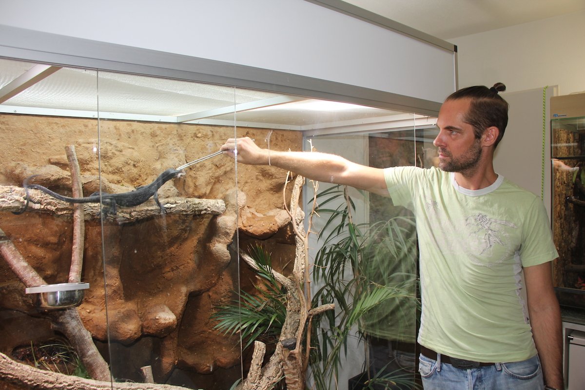 Kratzen, züngeln. Der Schwarze Baumwaran krabbelt heran – und schnappt. Nach einer Heuschrecke, die ihm Marc Stähli mit einer Pinzette hinhält. «Ich habe die Tiere gerne dort, wo ich wohne», sagt der 42-Jährige aus Zürich. So könne er sie gut beobachten. Er steht im Wohnzimmer seines Logis im zweiten Stock eines Mehrfamilienhauses vor jenem Terrarium, in dem die Exoten der Aru-Insel leben, einer Inselgruppe südlich Neuguineas. «Diese Weltgegend fasziniert mich von Jugend an», schwärmt der Tierliebhaber.
