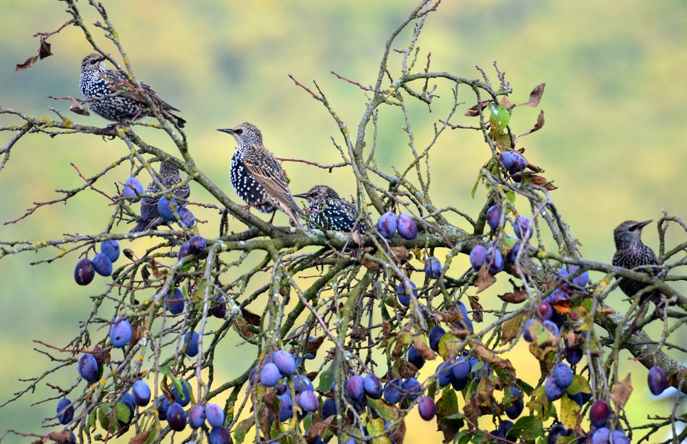Einen Moment lang verdunkelt sich der Sonnenstrahl, zetern und keckern, die Äste schwanken. Darauf hüpfen zahlreiche Stare. Ein ganzer Schwarm ist in die Hecke eingefallen. Kein Wunder, denn dort locken schwarze Ligusterbeeren. Das schwärzliche Gefieder der Vögel glänzt in der fahlen, schräg einfallenden Sonne, die weissen Punkte glitzern. Die Stare scheinen schier in Ektase zu geraten, so aufgeregt flattern und schnattern die Schwarmvögel in der Hecke. Sie nutzen den Herbst bis zum letzten Moment und ziehen erst spät in Richtung Mittelmeer, gestärkt von vitaminreichem Beerenfutter.