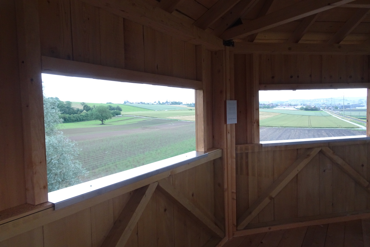 Der komplett aus einheimischem Holz gebaute Turm bietet aber nicht nur eine fesselnde Aussicht, sondern er beherbergt auch verschiedene Ausstellungen, etwa zur Geschichte des Grossen Mooses und zu den Tier- und Pflanzenarten in dieser Landschaft. Am Turm selber sind Nisthilfen für Mauersegler, Schwalbenarten, Meisen, Hausrotschwänze, Schleiereulen und Turmfalken angebracht. Ob die Plattform auf der Spitze des Turms eines Tages gar Störche anziehen wird? Auch Feldermäuse finden in speziell für sie gebauten Unterschlüpfen Schutz.