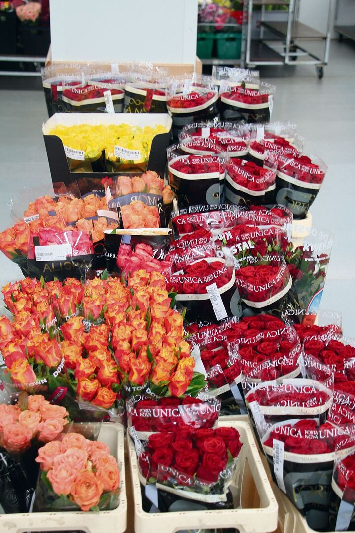 Ein graues Geschäftsgebäude in einem Aussenquartier Berns. Innen aber leuchtet in grellem Neonlicht ein Farbenmeer: Sonnenblumen, Rosen, Chrysanthemen, Erika, Eustoma und Amaryllis. Blumen, so weit das Auge reicht. Mittendrin: Pascal Speck. Der Geschäftsführer der Berner Blumenbörse, eines Umschlagplatzes für Blumen und Topfpflanzen, betont: «Bei uns kaufen ausschliesslich Fachgeschäfte ein, Privatpersonen haben da keinen Zutritt.» Die Genossenschaft Berner Blumenbörse habe mit Bern und Heimberg zwei Standorte, gehöre Schweizer Blumen- und Pflanzenproduzenten und sei Arbeitsplatz von etwa 40 Gärtnerinnen und Floristen. Es gebe insgesamt drei genossenschaftlich organisierte Blumenbörsen in der Schweiz, sagt der ehemalige Gärtner im auf etwa 8 Grad heruntergekühlten Raum. «In der Kühle bleiben die Blumen länger frisch.»