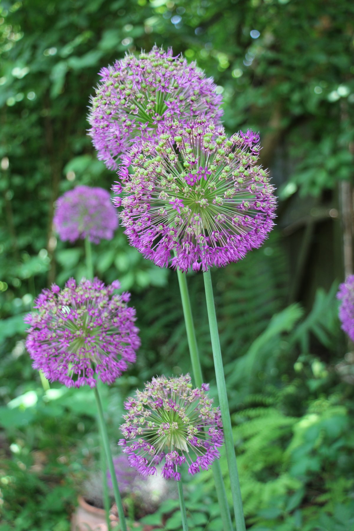Maggikraut wuchert. Hier zeigt sich: Pflanzen wirken auch durch ihre Blätter. Knospen der Sibirischen Iris verraten kurz vor dem Aufgehen bereits ihr Gelb. Zwischen Steinen ragen die dünnen Blütenstängel des Gelben Scheinmohns empor. Die Blütenblätter wirken zerknittert, als wären sie aus Krepppapier. Wie kleine Glöckchen in hohen Türmen hingegen sehen die schmucken Blüten des Bulgarischen Lauchs aus.