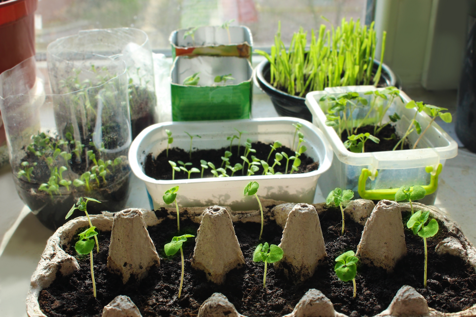 Gute Alternativen können auch Eierkartons, unterteilte Pflanzenschalen und aus Zeitungspapier gewickelte Pflanzentöpfchen sein.