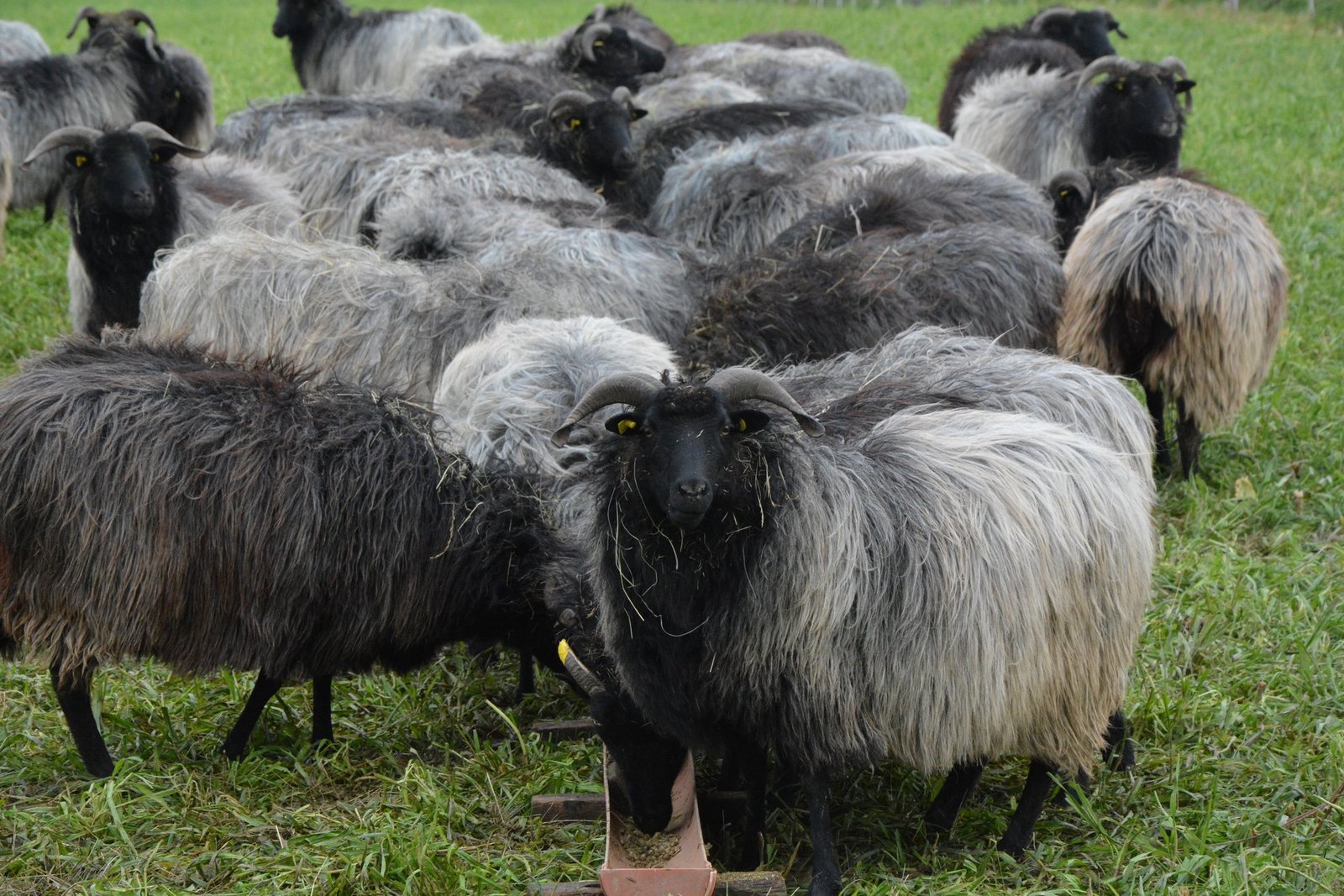 Die geschwungenen Hörner sind ein Erkennungsmerkmal dieser Schafrasse. Sowohl männliche als auch weibliche Tiere tragen sie. Ein weiteres ist ihr silbergraues, äusserst langes Haar. Die Lämmer kommen alle schwarz zur Welt und verfärben sich im Laufe des ersten Lebensjahres. Nach der ersten Schur kommt dann die rassetypische Farbe zum Vorschein.