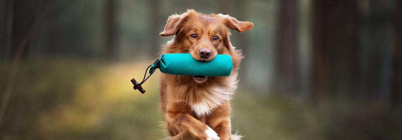 Klappt diese Übung zuverlässig, kann man den Beutel schon etwas weiter weglegen und den Vierbeiner zum Apportieren zu ihm schicken. Gerade für jagdlich ambitionierte Hunde sei die dafür erforderliche Impulskontrolle ein enorm wichtiges Training, so Flace. «Der Vierbeiner sollte zunächst so lange sitzen oder liegen bleiben, bis man ihm erlaubt, den Futterbeutel zu bringen.» Erst, wenn das «Bleib» perfekt funktioniert, kann man einen Schritt weitergehen und das Säckchen ein Stück weit wegwerfen. Durch das Fliegen der «Beute» wird der Anreiz noch grösser, sofort hinterherzurennen. Dies darf allerdings wiederum erst auf Kommando geschehen, sagt Flace. Damit sich der Hund nicht gleich mit dem geworfenen Futterbeutel aus dem Staub macht, befestigt man den Dummy am besten zunächst an einer langen Schnur. So behält man weiterhin den Zugriff auf den verlockenden Beutel.