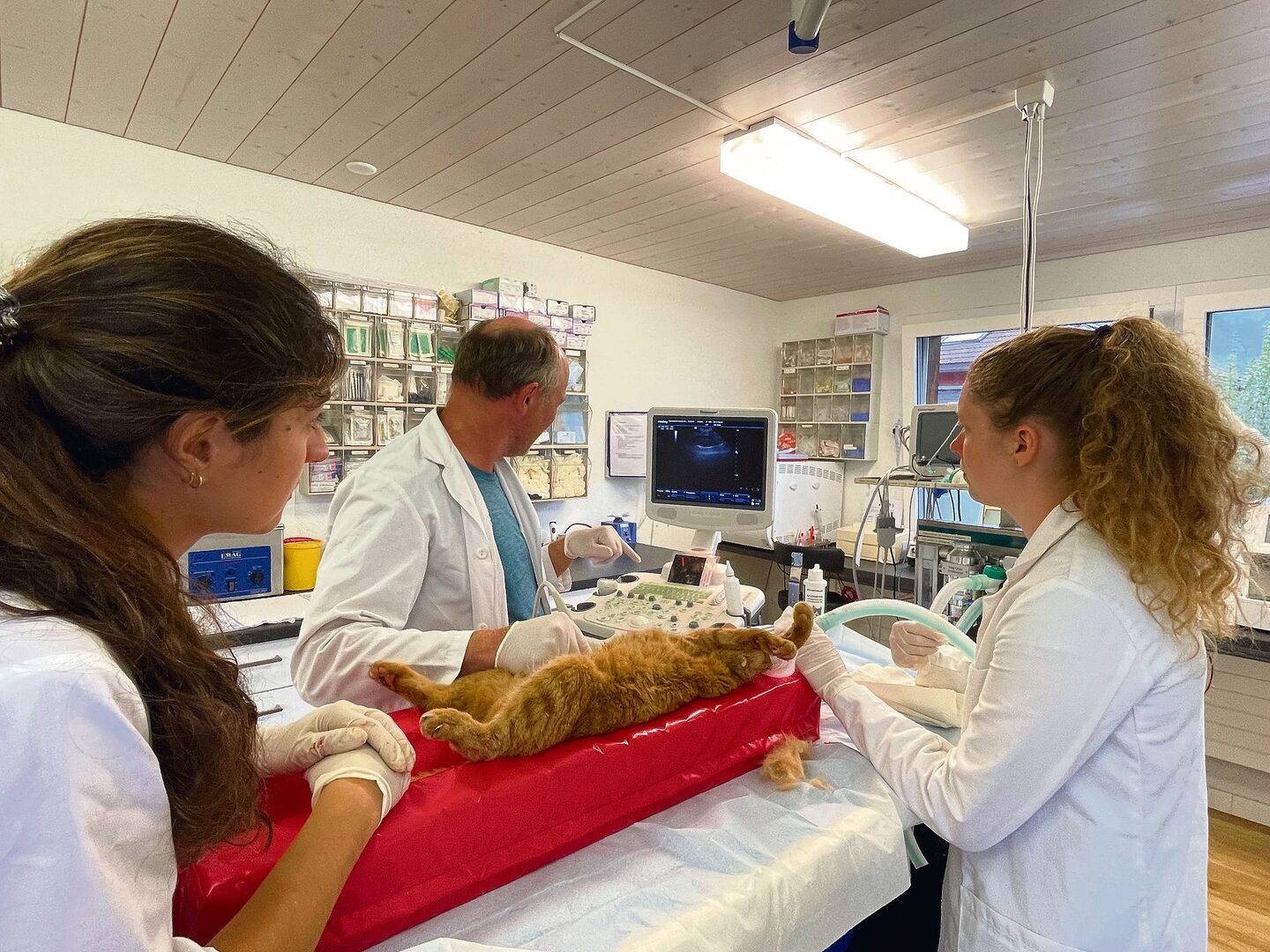 Kater Max bäumt sich auf und langt mit einer Vorderpfote energisch nach Sofia Benagli. Praktikantin Eva Fankhauser gelingt es nur mit Müh und Not, die rote Katze in Schach zu halten. Von der bevorstehenden Impfung hält Max rein gar nichts. «Wir müssen uns eine andere Behandlungsmöglichkeit überlegen», sagt die junge Tierärztin mit dem sympathischen Tessiner Akzent und setzt den Kater erst einmal zurück in seine Transportbox.
