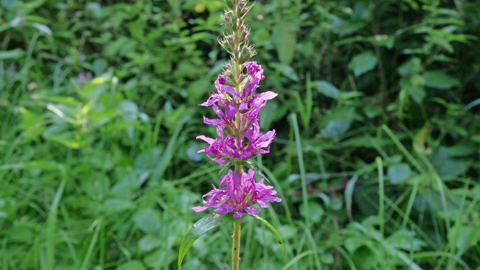 An Bachläufen oder feuchten Stellen begegnet einem manchmal eine besonders schöne Pflanze: Der Gewöhnliche Blutweiderich (Lythrum salicaria) wird bis 1,5 Meter hoch und fällt namentlich mit seinem purpurfarbigen Blütenstand auf. Nebst seiner blutstillenden Wirkung ist er vor allem ein verlässliches Mittel bei Durchfall. Das Glykosid Salicarin wird zusammen mit dem hohen Gerbstoffgehalt für die gute Wirkung verantwortlich gemacht.