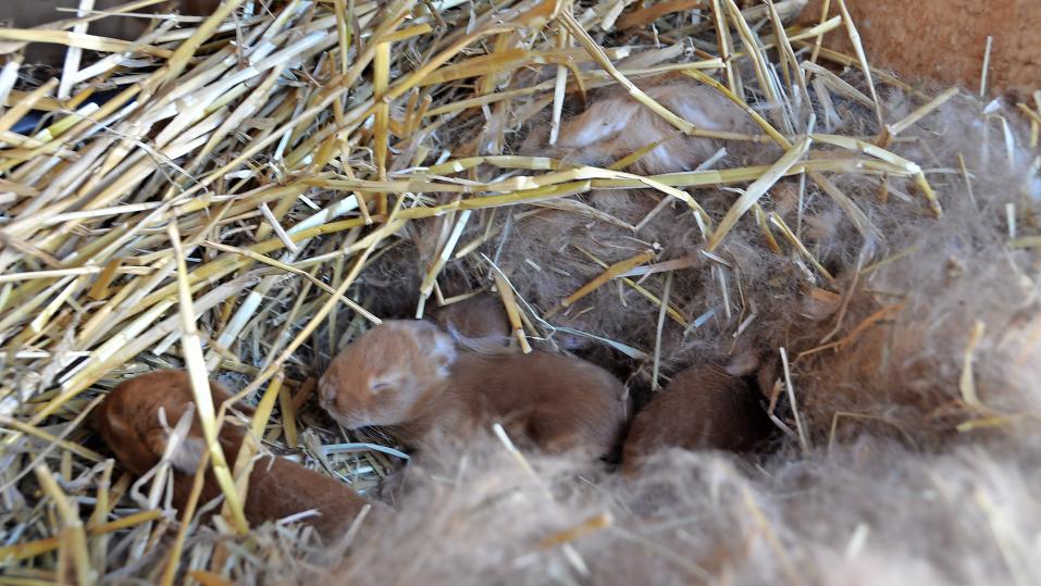 Die Darmflora entwickelt sich ab dem fünften Lebenstag mit der Aufnahme von Nesteinstreu, beim Wildkaninchen sind das Heu, angewelktes Gras oder Laub. Besteht die Einstreu dagegen nur aus Stroh und Holzspänen, verzögert sich die Entwicklung der Darmflora. Züchter tun also gut daran, den tragenden Zibben viel Heu oder gar angewelktes Gras für den Nestbau zur Verfügung zu stellen und regelmässig wenig Heu über das Nest mit den Jungtieren zu streuen. Das Verständnis der natürlichen Lebensweise von Kaninchen, einschliesslich Fütterung und Fortpflanzung, hilft, die Tiere artgerecht zu halten. Einfache Überlegungen zu Einstreu, Fütterung und Grössenverhältnissen ermöglichen, dass sich Kaninchen ihrem natürlichen Potenzial entsprechend entwickeln können.