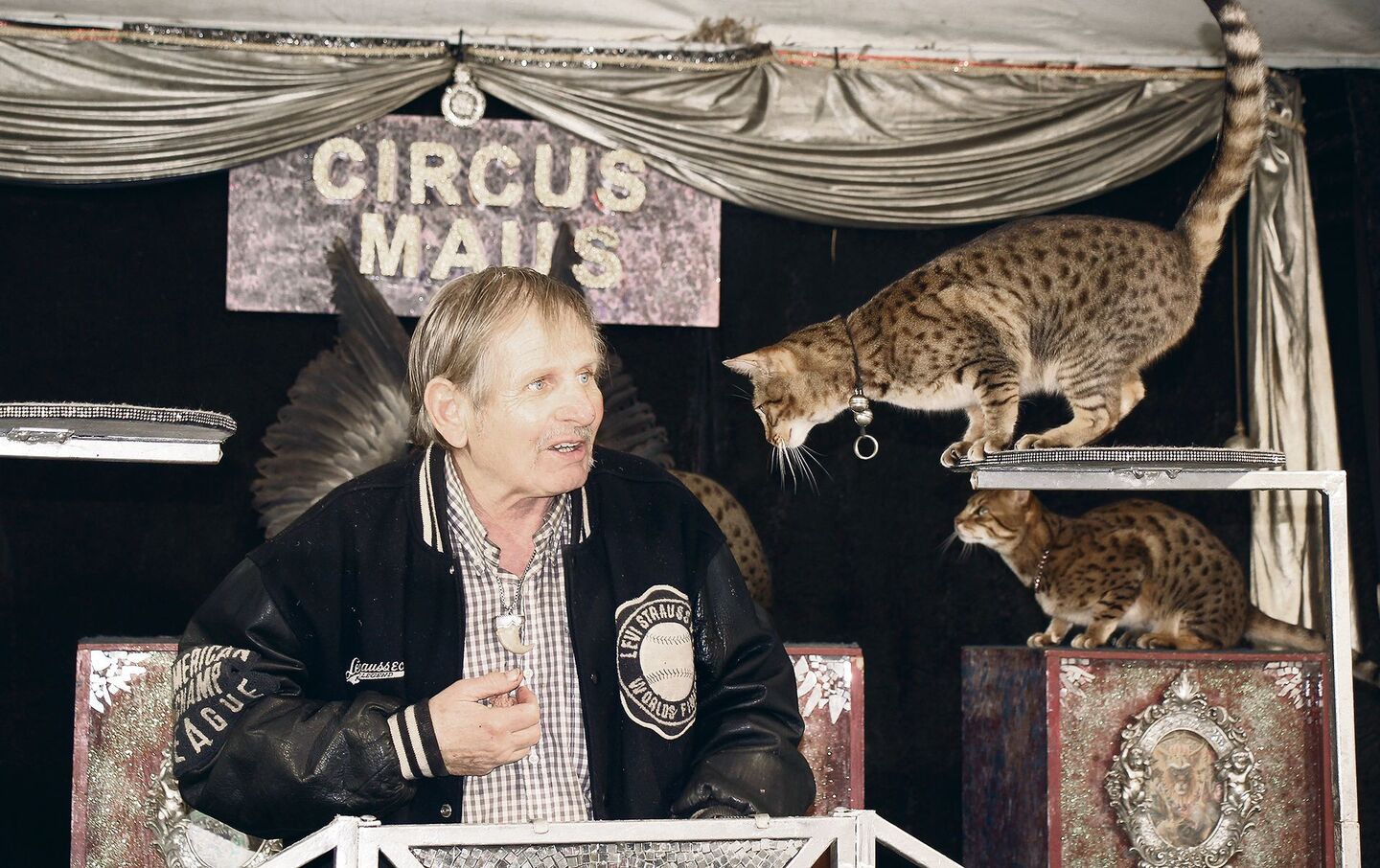 Der Traum, die Sprache der Tiere zu beherrschen und mit ihnen in Eintracht zu leben, gibt es nicht nur in Kinderbüchern und Märchen. In der Schweiz ist er real: Heini Gugelmann erinnert an Dr. Dolittle, an jenen Arzt, der die Tiersprache erlernte, aus der weltbekannten Geschichte von Hugh Lofting. Der Mann mit blonden Haaren, leichtem Schnauz und wachem Blick entschlüpft dem frühlingshaften Sonnenschein in ein längliches, weisses Zelt. Schwarzer Samt, ein goldener, kunstvoll drapierter Vorhang, eine silbern glitzernde Kugel, exotische Federn, Masken und ein Schild mit der feierlichen Aufschrift «Circus Maus» sind Teil dieser anderen Welt, in die er eben mal so rasch wechselt. Aus vier geheimnisvoll bemalten Kisten dringen miauende Geräusche und aus einem Lautsprecher schmettert die Melodie «Der Einzug der Königin von Saba».