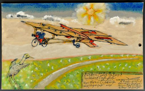 Wie Kurator Urs Weibel auf dem Museumsrundgang erläutert, befasste sich der Künstler mit der Massentierhaltung und wollte dem namenlosen Brathuhn ein Gesicht geben. Auf der Erde gibt es mit den 23 Milliarden mehr Hühner als Menschen, und der Hunger nach Hühnerfleisch wächst weiter ungebrochen. Das Huhn inspirierte den Künstler, weil es evolutionsgeschichtlich ein alter Vogel ist und nicht richtig fliegt, sondern flattert. Das übergrosse Werk stellt exemplarisch einen «Dinosaurier» aus dem Heute dar.