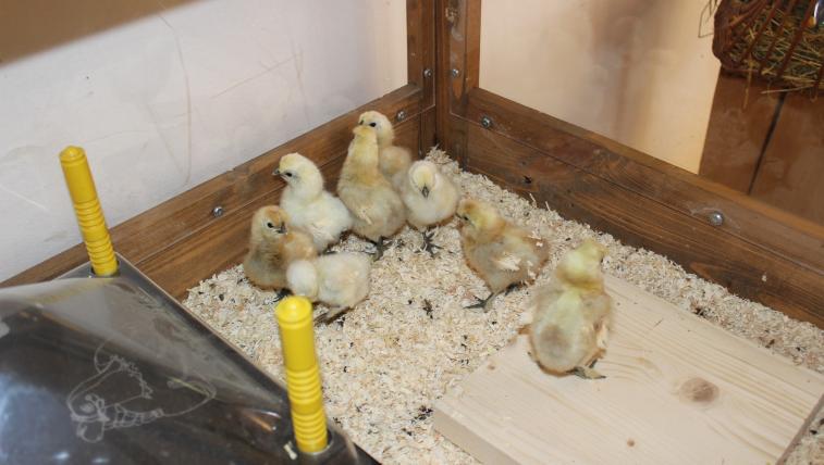 Als es allmählich dem Schlupfdatum, dem 25. März, entgegenging, wurde das Kükenheim vorbereitet. Die Glasscheiben wurden gereinigt, Futter- und Wassertöpfchen bereitgestellt. Die Einstreu und die Wärmeplatte hatte Eggler schon vorbereitet. Letztere musste am Vortag des Schlupftermins nur noch an den Strom angeschlossen werden.