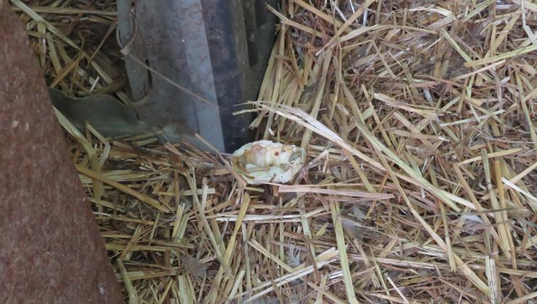 Bei den Wildfarbenen im Stall hat ein Weibchen gerade flauschige Küken bekommen. «Die Weibchen zeigen mir jeweils, dass ihre Jungen geschlüpft sind, indem sie eine Eierschale vor das Häuschen legen», erzählt Oechslin. Und tatsächlich liegt eine solche kaputte Eierschale neben der Türe im Stroh – Spuren auf ihrer Innenseite zeugen noch davon, wie sich das Küken aus dem Ei gekämpft hat.