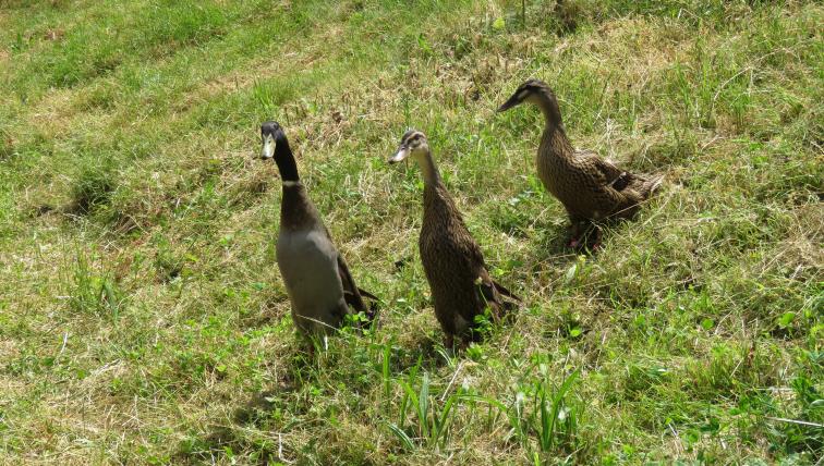 Mittlerweile haben sich die drei schwarz-grün-schimmernden Erpel in den Schatten eines Baumes gelegt. Sie gönnen sich eine kleine Ruhepause am Nachmittag. Bei der Hitze ist das sicher nicht die schlechteste Idee. Doch auch ihr nächster Einsatz in Zucht oder Vermietung kommt bestimmt. Bis dahin bekommen sie von Pia Oechslin sicher noch ein paar Streicheleinheiten.