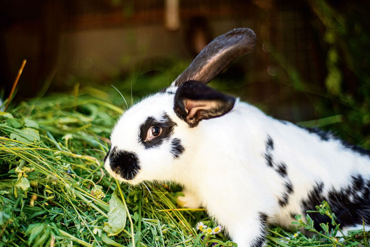 Auch wenn Hauskaninchen in vielen Farben und Formen daherkommen – ihr Verdauungsapparat unterscheidet sich kaum von dem der Wildkaninchen. Gräser, Kräuter, Blätter und gelegentlich auch Zweige und deren Rinde machen die Nahrung der wilden Mümmelmänner aus. Kaninchen haben einen Stopfmagen. Damit Nahrung durch den Darm passieren kann, muss kontinuierlich Futter nachrücken. Bis zu 80 kleine Mahlzeiten nehmen die Tiere daher täglich zu sich.