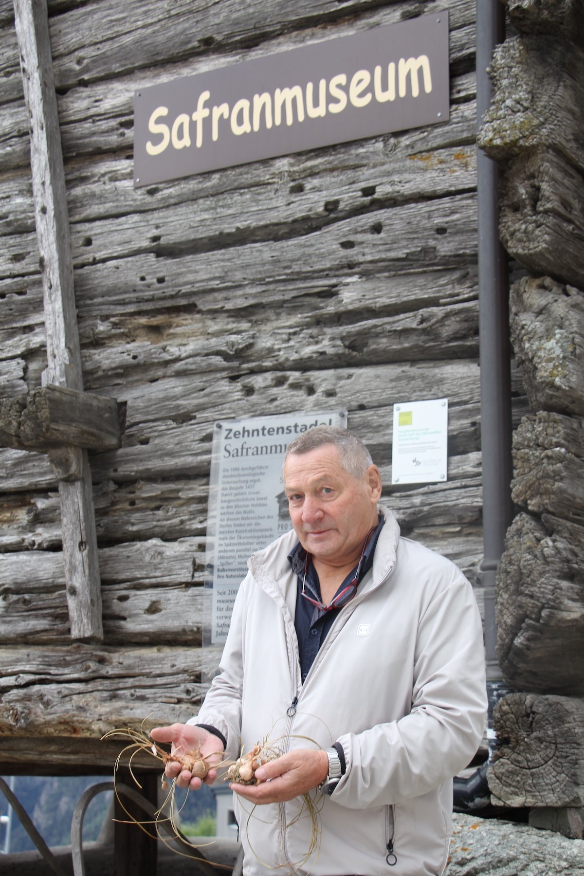 «Das hier sind die alten Anbauflächen für Safran», erklärt German Jossen und zeigt auf kleine Äcker unter ihm. Er könne sich gut daran erinnern, wie seine Grosseltern hier bereits Safran angebaut hätten. «Mein Grossvater trug die mit Safranblüten gefüllte Tschiffra nach Hause.» Dort habe man dann am selben Abend in mühsamer Kleinarbeit die Narben aus den Blüten gezogen und sie zum Trocknen ausgelegt. Als Zwölfjähriger habe er seinem Vater bei der Ernte geholfen. «Als Kind schätzte ich allerdings Safran kaum.» Das ist heute ganz anders. German Jossen kümmert sich ehrenamtlich während seiner Freizeit um Safran. «Er ist mein Haupthobby», sagt er und schmunzelt. Jossen ist nicht nur nebenamtlicher Safranbauer, sondern auch Meister der Safranzunft. «Wir wollen…