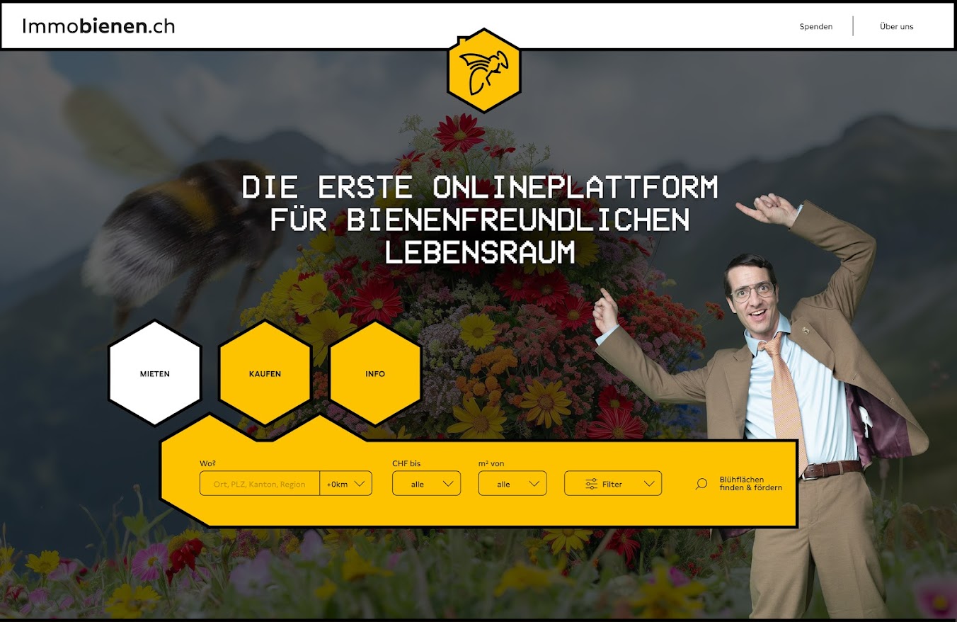 Pünktlich zum heutigen Weltbienentag, ging die erste von BienenSchweiz initiierte Immobilienplattform für Bienen live. Auf immobienen.ch stehen für interessierte Käuferinnen und Käufer rund 170 Blühflächen zur Verfügung, die mit einer Spende erworben werden können. Je nach Grösse variiert der Kaufpreis zwischen 30 und 150 Franken. Mit diesem Betrag decken die neuen Blühflächen-Besitzer die Kosten für das Anlegen der Blühfläche, der Beschaffung von geeignetem Saatgut und einer Beratung durch BienenSchweiz. Wer lieber mietet statt kauft, kann eine Fläche monatlich mieten. Die Miete dient dem Unterhalt der neuen Bienen-Lebensräume, denn dieser darf nicht ausser Acht gelassen werden. Aufgebaut ist die Website wie eine klassische Immobilienplattform, auf der ersichtlich ist, wo sich der Bienenlebensraum befindet, um wie viele Quadratmeter es sich handelt und welcher Ausbaustandard angeboten wird.
