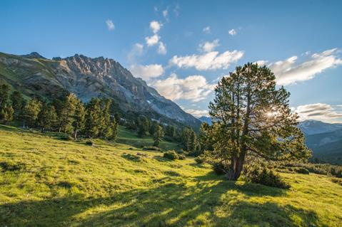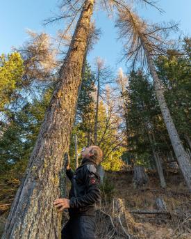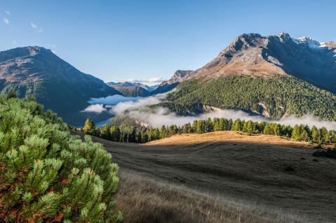 Lozza nimmt den Rucksack, weiter geht’s über Wege, die mit Gold beschichtet sind, dem Nadelgold der Lärchen. Niemand ist zu sehen, doch der Naturliebhaber sagt: «Wir werden von unzähligen Augenpaaren beobachtet. Steinböcke, Gämsen, Raben, Tannenhäher – sie alle wollen ganz genau wissen, was wir tun.»