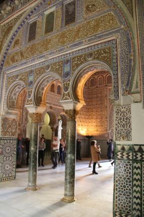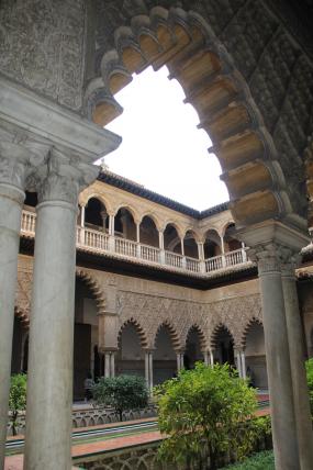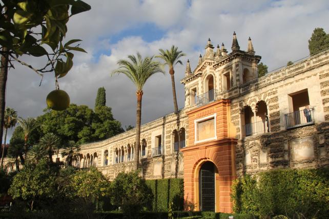 Die Erbauer wussten sich abzugrenzen gegen das gemeine Volk. Die Mauer mit den eingebauten Verteidigungstürmen spiegelt die politische Instabilität der muslimischen Epoche. 712 begannen Araber, Teile der Iberischen Halbinsel zu erobern. Zuerst war Cordoba die Hauptstadt von al-Andalus, wurde dann aber von Sevilla abgelöst. Der Alcázar wurde im 11. Jahrhundert von den muslimischen Invasoren erbaut. Die arabischen Elemente sind denn auch prägend im Palast-Garten und sind besonders reizvoll. Das fanden auch die christlichen Herrscher, die Andalusien ab dem 13. Jahrhundert zurückeroberten und den Alcázar übernahmen und weiter ausbauten. Heute gehört er dem spanischen Staat.