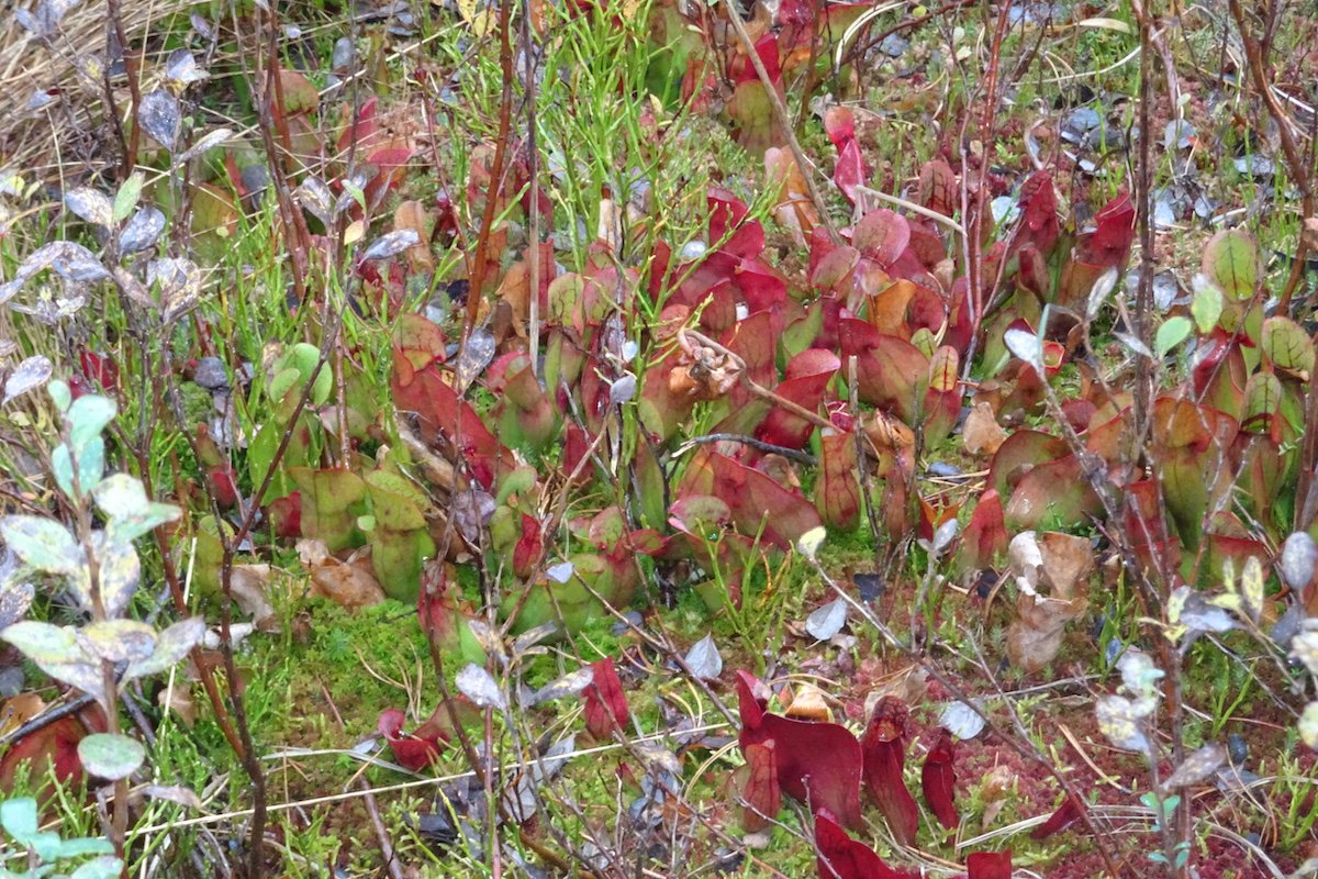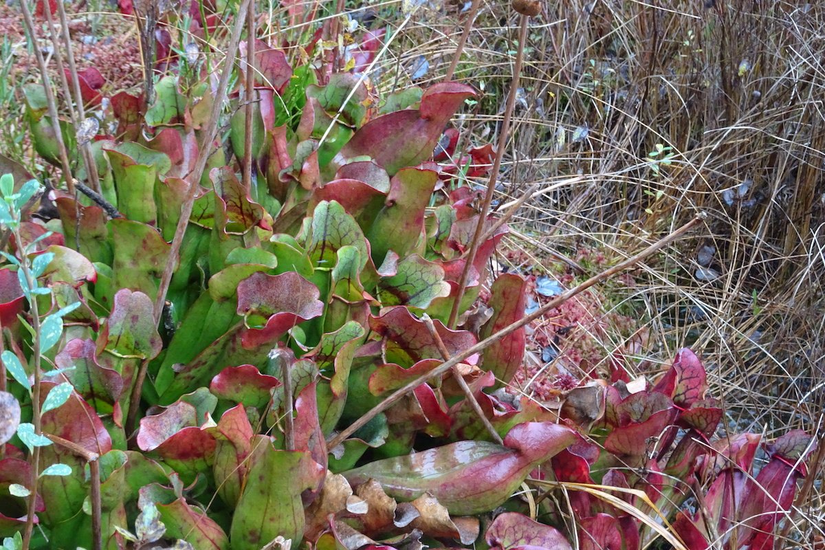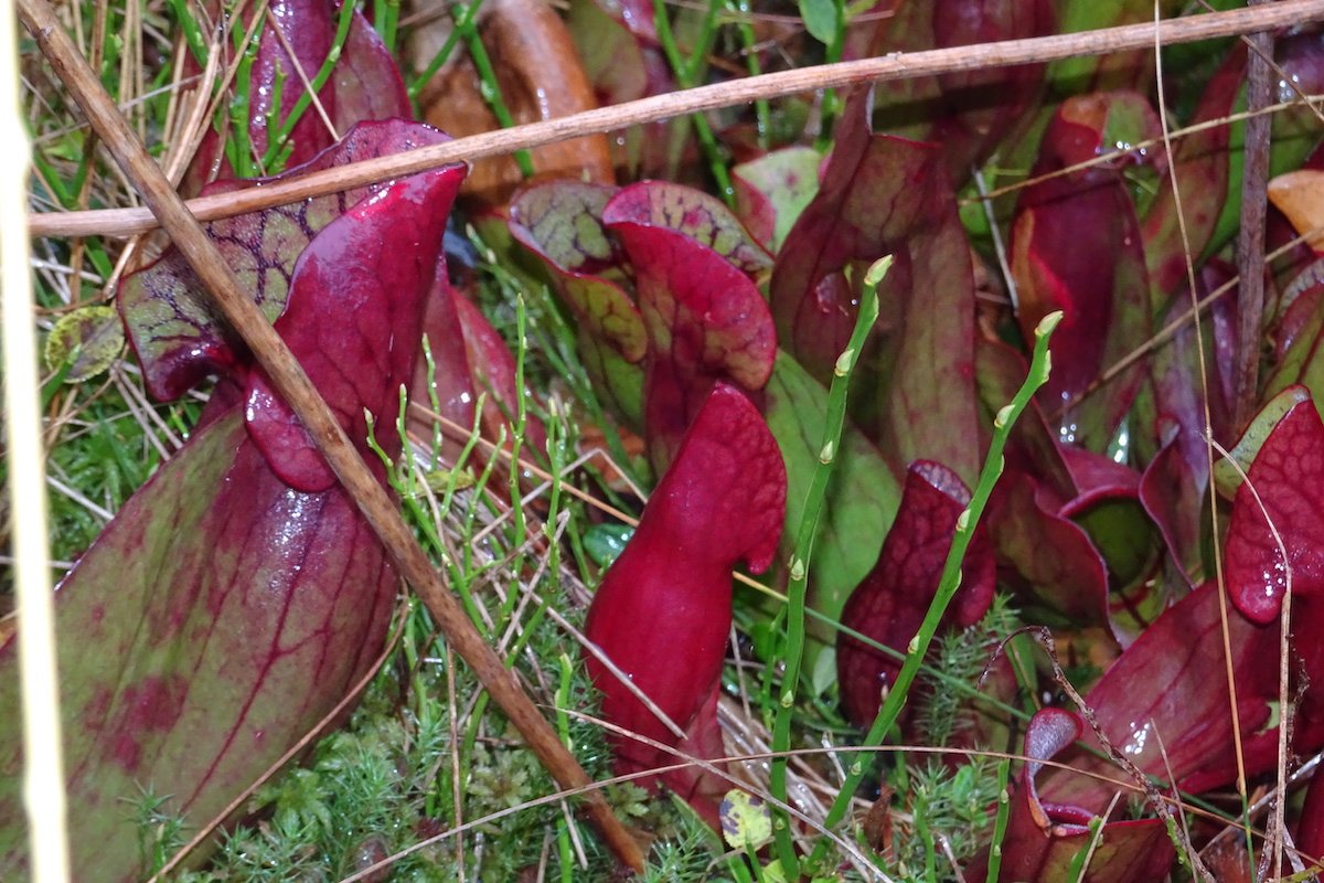 Eindrücke ferner Lebensräume lassen sich auch ganz in der Nähe gewinnen, ohne lange Flugreise. Zum Beispiel bei Les Pléiades im Waadtland. Im Hochmoor zwischen Prantin und Lally sieht es aus, wie in einem Moor in Nordamerika. Dafür verantwortlich sind die besonderen Krugpflanzen (Sarracenia purpurea).