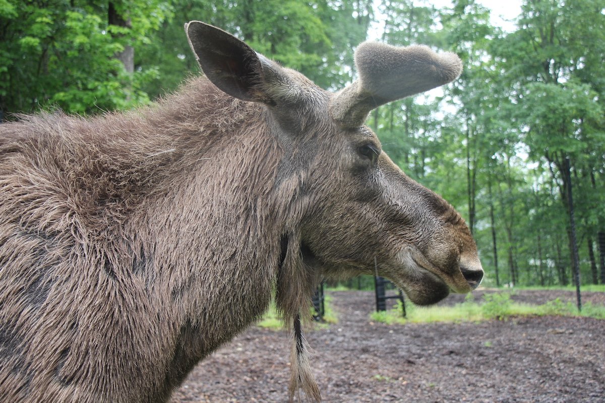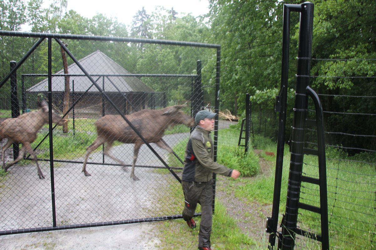 «Unsere Elchanlage ist 27 000 Quadratmeter gross und in vier Bereiche unterteilt», erzählt der Experte und erklärt das besondere Haltungssystem. «Hier leben abwechselnd Elche, Przewalski-Pferde und Rehe.» Rehe und Elche hielten sich oft gleichzeitig in derselben Anlage auf. Da die Bereiche so gross sind, begegnen sich die Tiere kaum. Zum Vergleich: Die Schweizer Tierschutzverordnung schreibt 800 Quadratmeter für drei Elche vor.