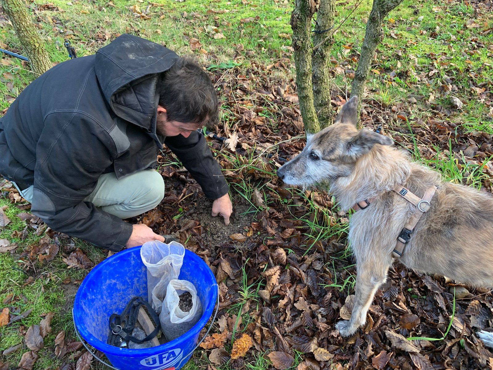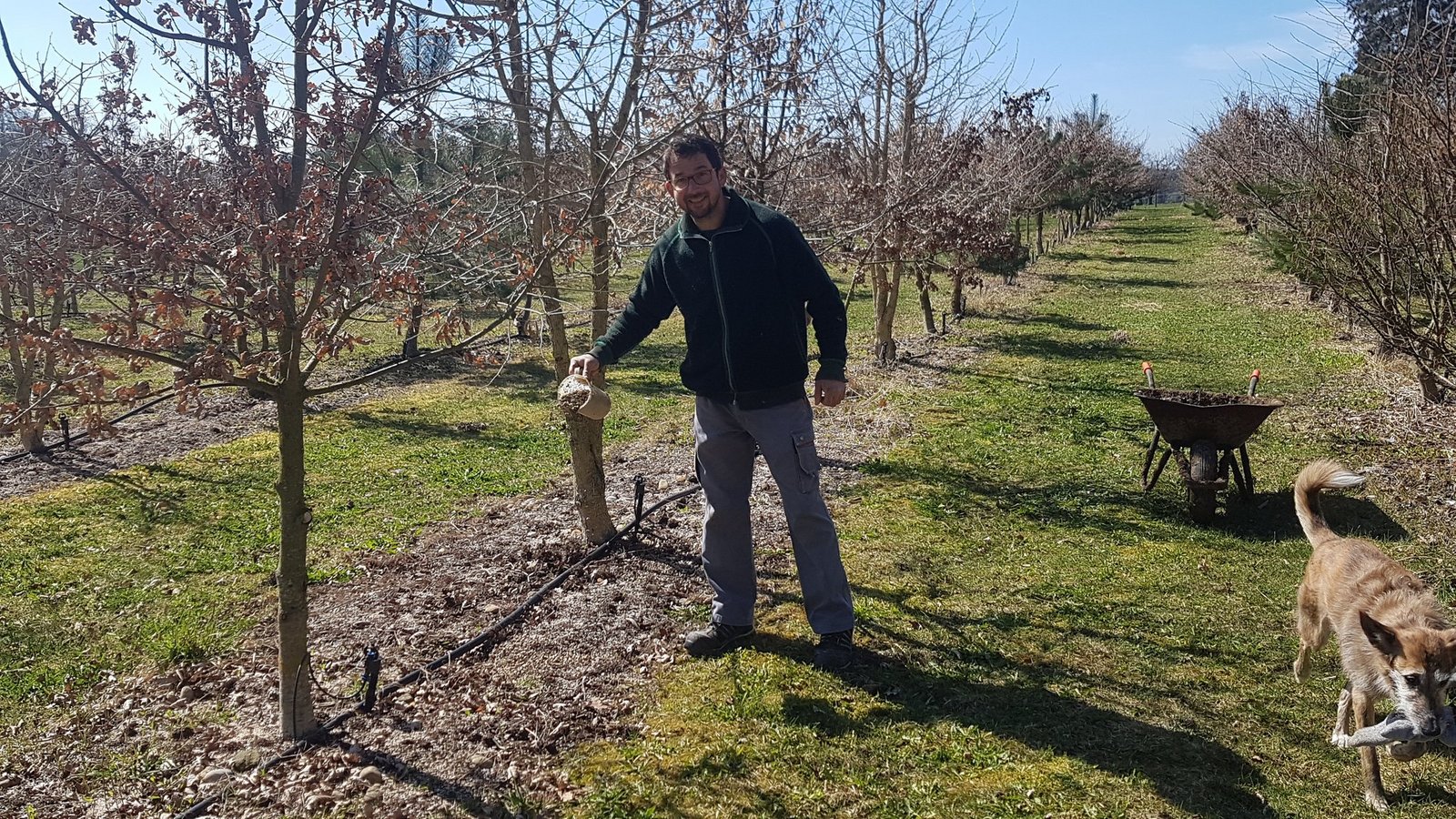 Die 7-jährige Sansa hingegen ist ein wahres Ass beim Aufstöbern von Plantagen-Trüffeln. Wirklich trainiert hat er die Mischlingshündin jedoch nicht, sie hat sich das Trüffelsuchen einfach bei Nubia abgeschaut und die richtige Belohnung tut das ihrige dazu – Leberwurst aus der Tube steht besonders hoch im Kurs.