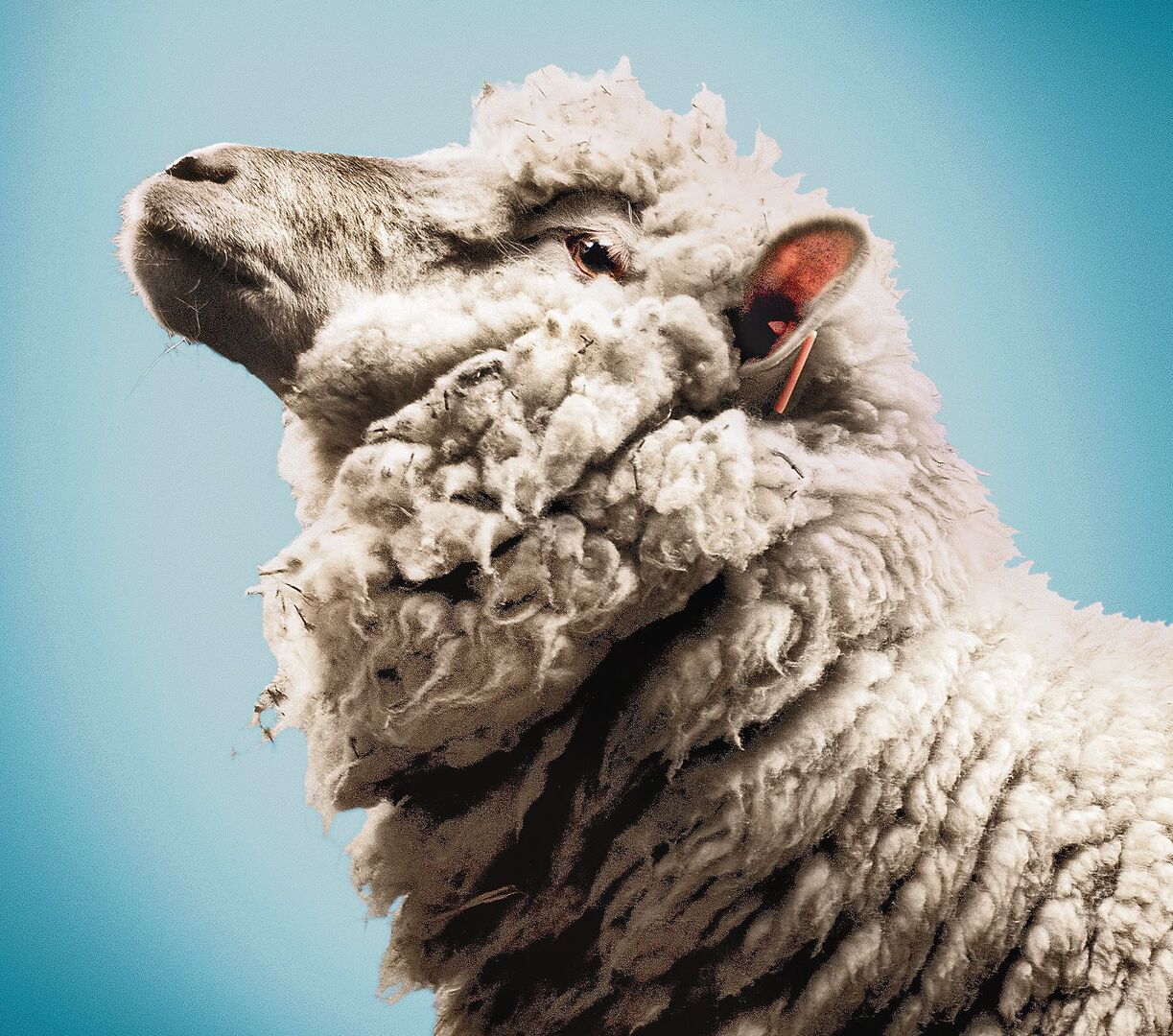 Dieser Unterschied zwischen den wolligen und den schlanken, geschorenen Schafen hat mich schon als Kind fasziniert. Für das Projekt arbeiteten wir mit dem Wanderschäfer Ernst Vogel zusammen. Am Schertermin machten wir ein kleines Casting. Die auserkorenen Schafe haben wir dann einzeln vor und nach der Schur in einem kleinen umzäunten Pferch mit einem eingefärbten Hintergrund aus Pappe fotografiert. Das lief ganz gut, auch wenn es nicht ganz einfach war, die Tiere dafür zu begeistern, kurz still zu halten. Bis dann allerdings ein Schaf herausgefunden hat, dass der Hintergrund ja ziemlich leicht zu durchbrechen ist. Von da weg ergriffen alle anderen Schafe auch die Flucht durch die Hintertür.