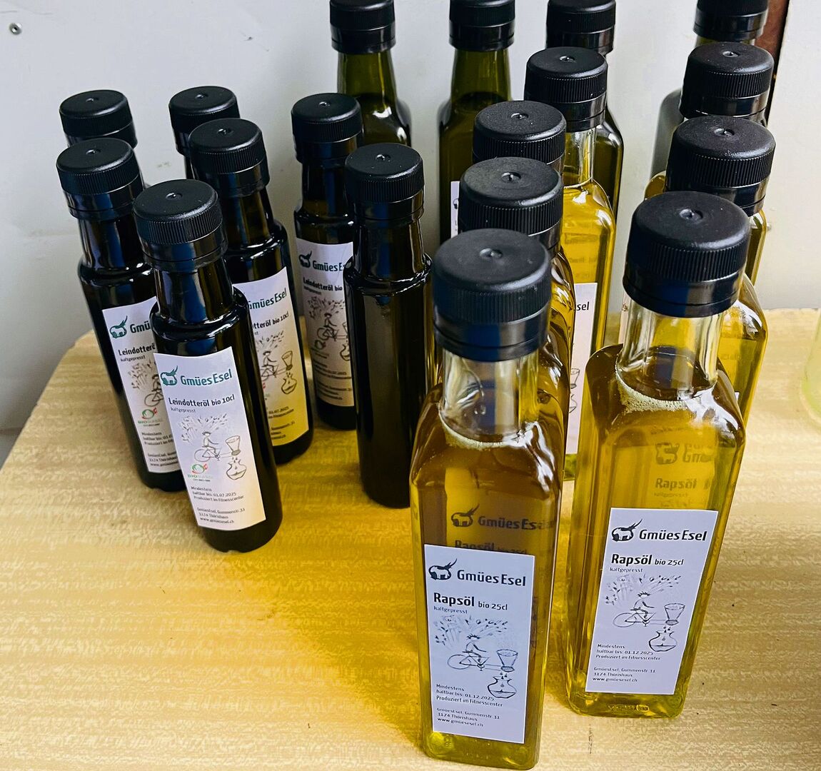 Tom Wieland geht nicht so rasch die Puste aus. Er rennt in flottem Tempo auf dem knarrenden Crosstrainer – konzentriert, mit grosser Ausdauer und der Seelenruhe eines Marathonläufers, der schon zigmal die Ziellinie überquert hat. Und nach wenigen Sekunden ist es so weit: Der erste Tropfen Öl löst sich wie von Zauberhand aus der braungrauen Masse, die in dünnen Röllchen aus einem fleischwolfähnlichen Gerät quellt und in einen Eimer plumpst. Die Freude steht dem 50-jährigen Gründer des «Gmüesesels» ins Gesicht geschrieben, jetzt, wo sich das Glas immer mehr mit Öl füllt und sich jeder zusätzliche Schritt auszuzahlen scheint.