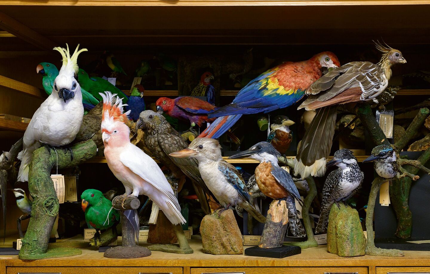 Dass es nicht nur in der Natur Vögel zu entdecken gibt, sondern auch im Museum, zeigen die Bilder dieses Beitrags. Sie stammen aus dem Buch "Vogelwelten - Expeditionen ins Museum". Das Autorentrio, bestehend aus dem Fotografen Klaus Nigge, dem Biologen und Arzt Karl Schulze-Hagen und dem Tierpräparator Jürgen Fiebig, hat sich in die Archive verschiedener naturhistorischer Museen begeben und Vogelschätze gesichtet, vom Strauss bis zum Kolibri. Die Autoren inszenieren schillernde Vögel im Biold, geben Einblick in den wissenschaftlichen Wert der Sammlungsobjekte und spüren Biiografien von Forschern nach.