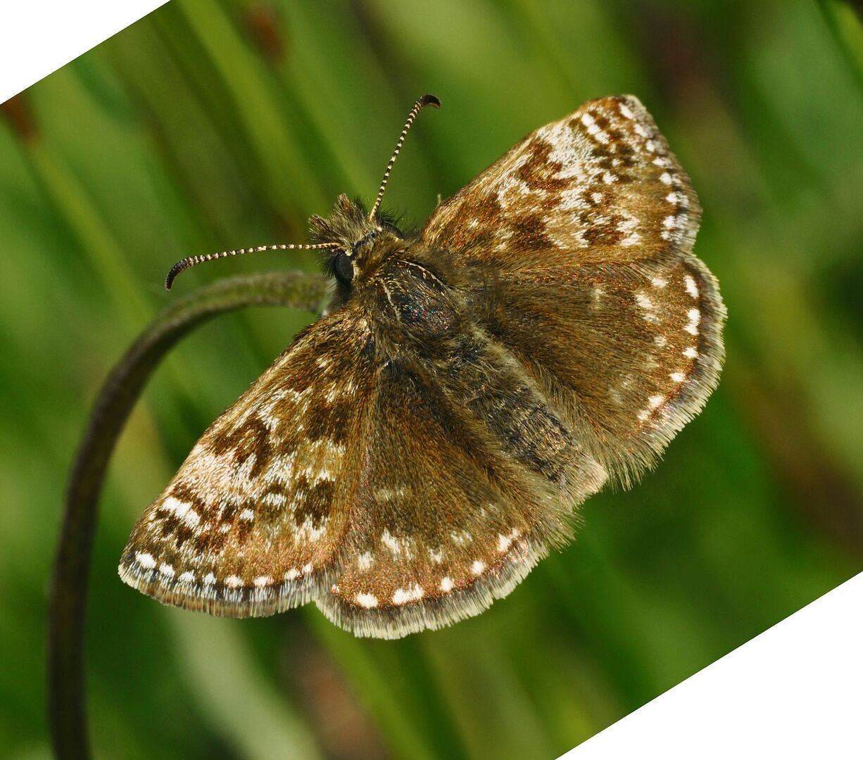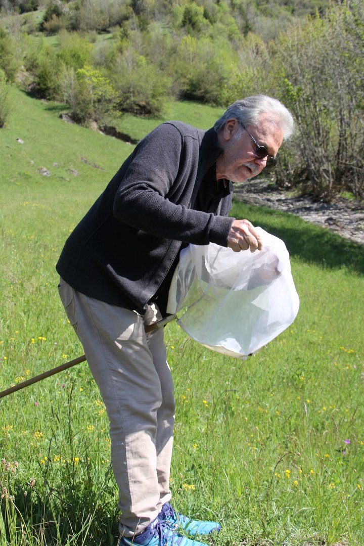Kaum zu glauben, was Hans-Peter Wymann aus dem steilen Hang alles herauskitzelt. Nach wenigen Minuten in der blühenden Magerwiese hat er schon über zehn Schmetterlingsarten entdeckt. Jetzt ruft er: «Hier, ein Zwergbläuling!». Er schwärmt: «Bläulinge gefallen mir seit jeher besonders.» Aus dem Grün funkelt ein azurblauer, kleiner Falter wie ein Lapislazuli. Dann macht Wymann ein Kleines Wiesenvögelchen aus, erwähnt nebenbei, dass es davon acht Arten gebe, zwei davon seien in der Schweiz ausgestorben, einer Art gehe es schlecht, eine weitere sei auf dem Weg dazu. Der Schmetterling klappt seine orange schimmernden Flügel zu und gaukelt davon. Doch da segelt schon der Wegerich-Scheckenfalter heran. «Eine sehr wärmeliebende Art», kommentiert der 67-Jährige den Schmetterling mit orangen Flügeln, die von einem unregelmässigen Schachbrettmuster überzogen sind.