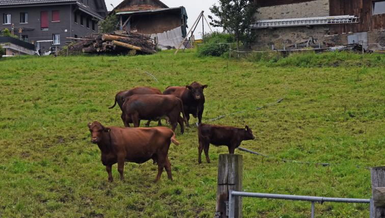 Meierskappel im Kanton Luzern. Dunkle Wolken zeigen sich am Himmel. Unbeeindruckt vom aufziehenden Gewitter grasen die Kühe weiter, stets einen Blick auf den Nachwuchs gerichtet. Während ein Kalb im Gras liegt, weicht ein anderes dem Stier aus, der einer Kuh Avancen macht. Ein lautstarker Chor aus hohem und tiefem Muhen kündigt an, dass der Rest der Herde die Verdauungspause im Stall beendet hat und auf die Weide drängt.