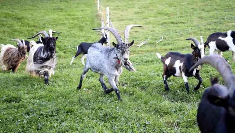 Neugierig läuft sie hinter ihm her, die bunte Schar: die graue Capra Grigia, die tiefschwarze Nera Verzasca, weiss-schwarze Pfauenziegen, braun-weisse Toggenburger und braun-beige-graue Stiefelgeissen. Bei der Hütte auf 1900 Metern angekommen, rasen sie auf und ab, hüpfen auf Steine und wieder herab und messen sich in Hörner-Duellen. Einzig die vier verschiedenen Walliser Geissen und die Bündner Strahlenziegen fehlen – dann wäre Anna Roestis 43-köpfiger Ziegentrupp auf dem Col des Mosses in seiner ganzen Vielfalt komplett.