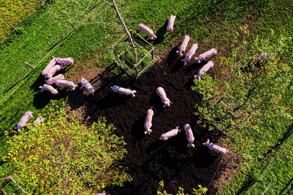 Die Tiere benehmen sich absolut schweinemässig. Dass sie dies tun können, haben sie Oliver Hess zuverdanken, der das Konzept «Wiesenschwein» erfand. Der 51-jährige gelernte Drucker wechselte 2004 in die Landwirtschaft. Als Erstes baute er ein Baumhaus in Hildisrieden LU, das immer noch steht, wie er nicht ohne Stolz sagt. Danach hütete er Schafe, arbeitete mit Herdenschutzhunden und war Herdenschutzbeauf-tragter des Bundes im Entlebuch.