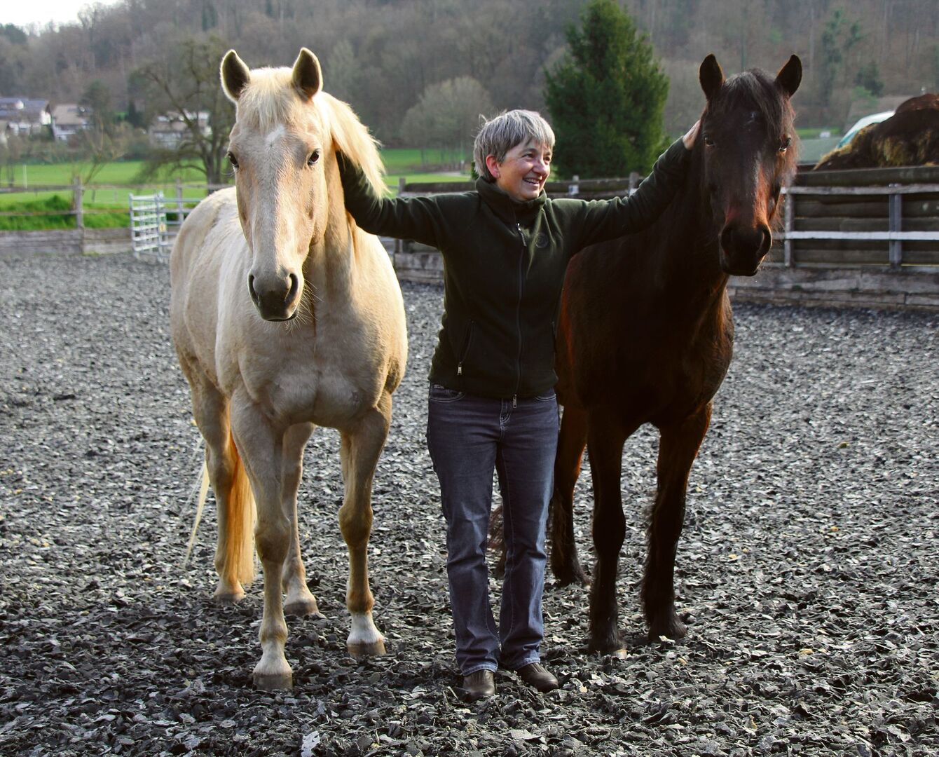 Die Pferde tänzeln um Ruth Herrmann, stehen still, heben abwechselnd die Vorderbeine, trippeln eine Acht um die zierliche Frau, das Beige steigt nun sogar auf die Hinterbeine. Dann wieder legen sich beide hin, das Nussbraune wälzt sich gar am Boden. Ausgelassene Stimmung auf dem Trainingsplatz eines Pferdehofs etwas ausserhalb von Kappel (SO).