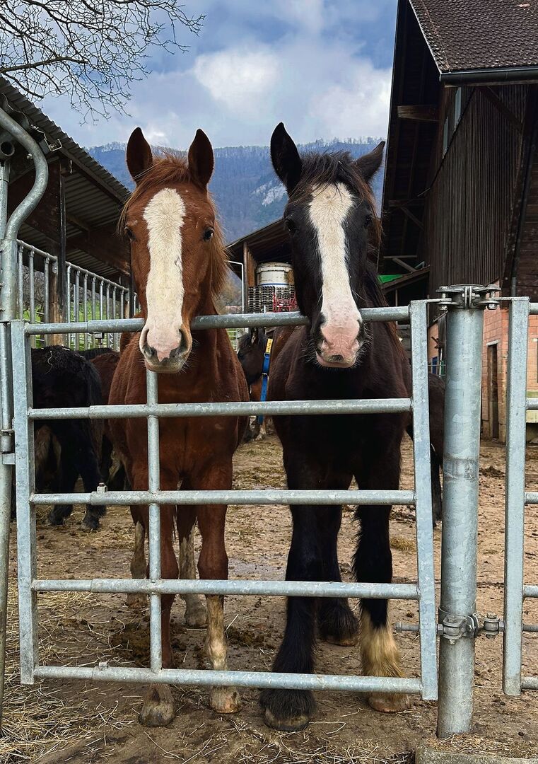 Aukje schnuppert am Heu. Sie spitzt die Lippen und knabbert vorsichtig an einem Halm. Die Puschelohren nach hinten gedreht, die Augen geweitet. «Am Anfang ist alles etwas zu viel. Die Fohlen sind noch angespannt und überfordert. Doch jede Integration läuft anders», erklärt Christian Stark, Betriebsleiter der Fohlenaufzucht Kaiserhof im solothurnischen Laupersdorf. Eine braune Jungstute legt die Ohren an und wirft ihren Kopf in Aukjes Richtung. Die kleine Friesenstute weicht zur Seite und trabt in die Mitte des Paddocks. Aukje kam im Juli zur Welt und wurde gestern zu Christian Stark auf die Fohlenweide gebracht. Nun steht sie da, wie ein Kindergartenkind, das an seinem ersten Tag vom Morgenkreis ausgeschlossen wird.