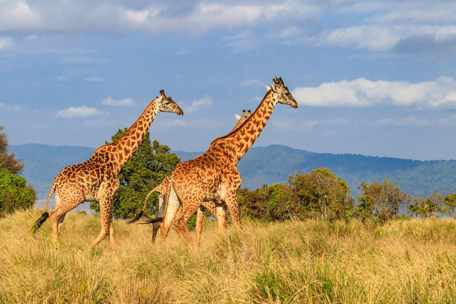 Giraffen sind die Ikonen der afrikanischen Savanne. Eine Savanne ist ein Ökosystem, das aus Bäumen, Büschen und Grasland besteht. Die Bäume stehen so weit aus-einander, dass das Blätterdach offen ist und das Sonnenlicht den Boden erreichen kann und Gräser unter und um die Bäume sowie Büsche ringsherum wachsen.