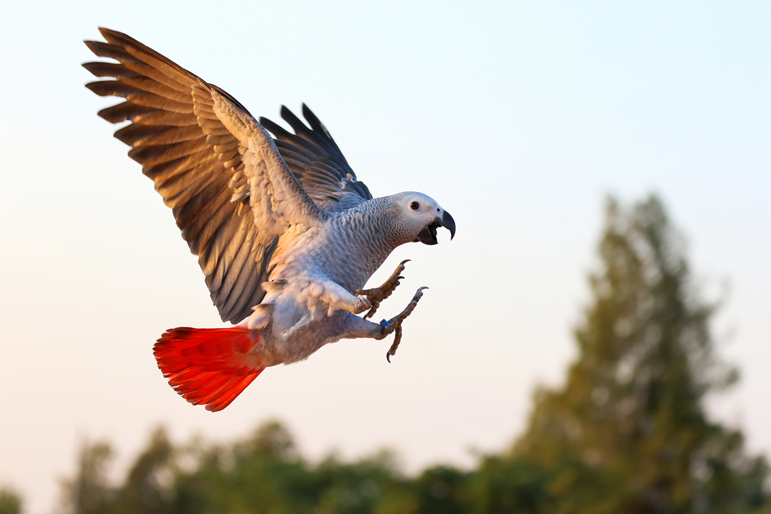 Ihr Gefieder funkelt, sie singen oder krächzen, sind graziös und drollig. Vögel, wie dieser fliegende Graupapagei, ziehen uns in ihren Bann. Darum werden seit alters her verschiedene Arten unter Menschenobhut gehalten. Sass früher ein Einzelvogel in einem Käfig, fliegen heute Paare in Volieren – oder frei am Himmel. Von einem jungen Mann, der seine Grosspapageien draussen fliegen lässt, und von Vogelhaltung und -zucht in Biotopvolieren.