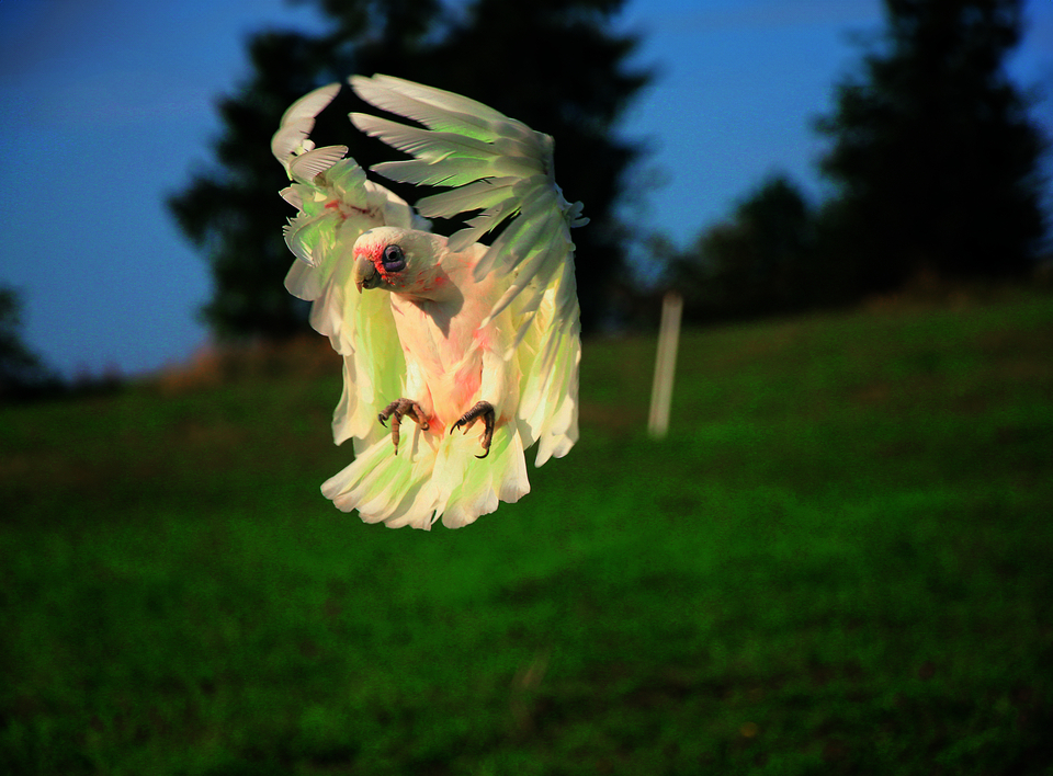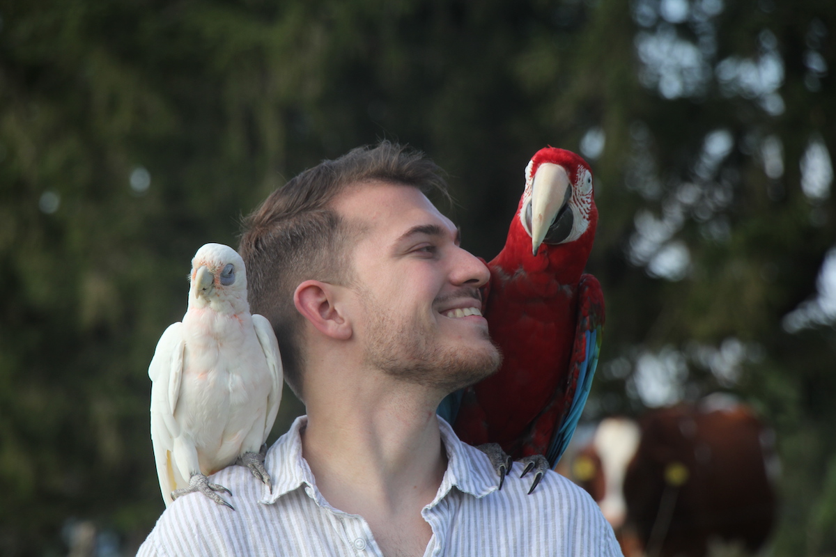 «Nunu, komm!» Blitzend weisse Federn rauschen. Ein Nacktaugenkakadu hat sich in die Luft geschwungen und fliegt auf die ausgestreckte Hand von Alan Braîchet. Der junge Mann lächelt und streichelt sanft über das Gefieder des kleinen Australiers. Eine ungewöhnliche Gesellschaft in den Hügeln um Delémont an einem Abend Ende August.