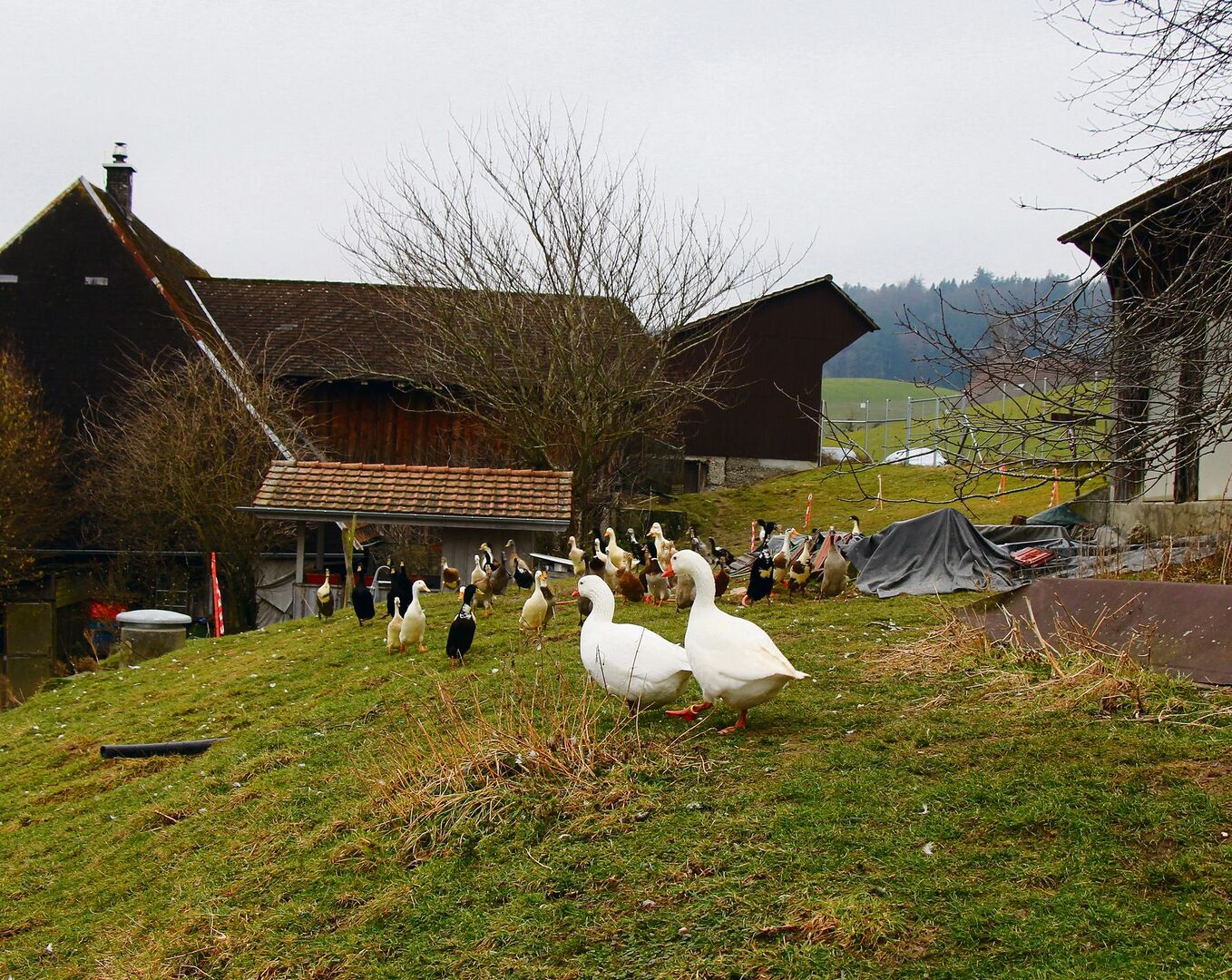 Anfang Februar sind sie alle zu Hause, doch ab März gehen sie wieder auf Tour: Die 65 Laufenten von Amélie Lindner. An einem nebligen Samstagnachmittag ruhen sie sich im Gras neben einem Bauernhaus in Leimiswil (BE) aus. Zwei weisse Gänse wachen über den Trupp. Andernorts weiden Kühe auf Flächen, wie sie Amélie Lindners Wassergeflügel zur Verfügung haben. Sobald die junge Frau mit Gummistiefeln, Jacke und wehenden schwarzen Haaren durch die Weide stapft, kommt Leben in die Schar.