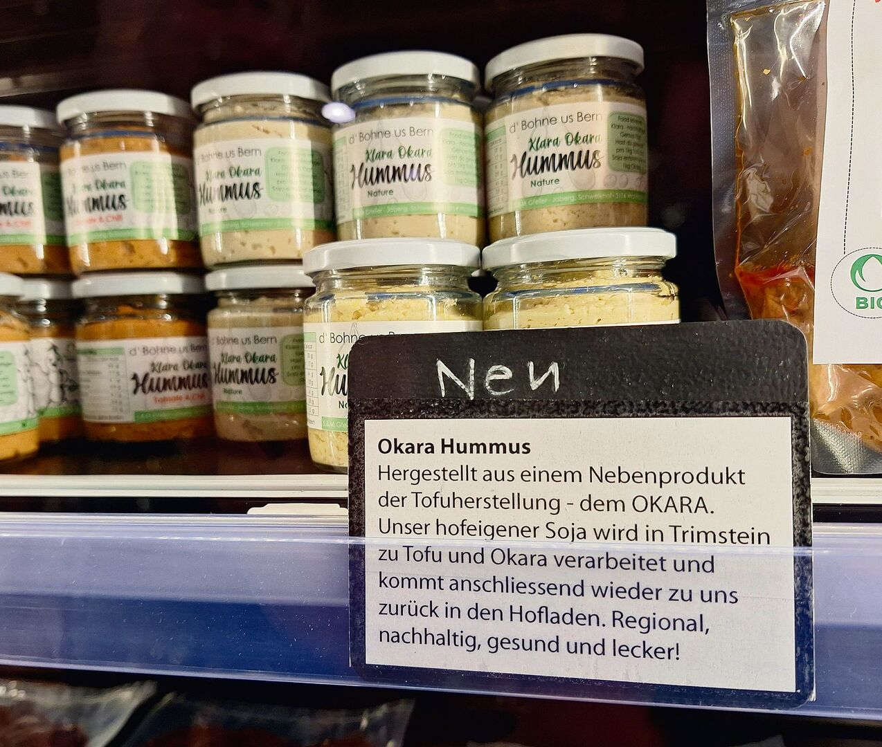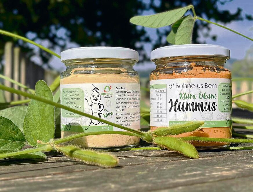 Stefanie und Matthias Gfeller produzieren am Schweikhof in Wichtrach (BE) Speisesoja, das zu Tofu weiterverarbeitet wird. Dabei fällt Okara an, ein Nebenprodukt, das in der Schweiz oft nur als Tierfutter endet. Zusammen mit ihrer Mitarbeiterin Priska Wyss haben Gfellers einen Weg gefunden, aus Okara Hummus zu produzieren – ein Produkt, das nicht nur viel Zuspruch erhält, sondern sogar für den Agropreis nominiert wurde.