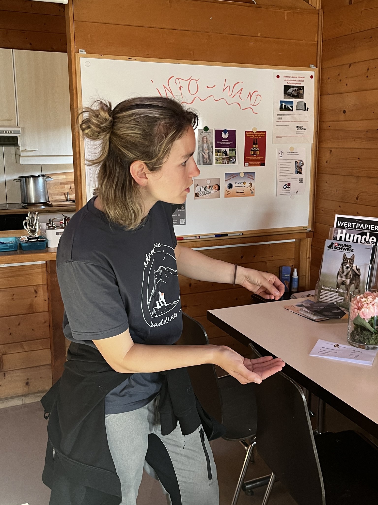 Pipo, Zara, Maja und Nyla sollen ihren Kopf selbstständig in die geöffnete Hand ihrer Vertrauensperson legen. Dort soll der Hundekopf mit Gewicht und möglichst lange ruhen. So erklärt Flavia Purtschert die erste Übung, die an diesem warmen Sommerabend im Clubhaus des Kynologischen Vereins Luzern eingeübt wird. Vier Hundehalterinnen und Hundehalter mit ihren Vierbeinern haben sich zum Medical-Trainings-Kurs zusammengefunden. Einerseits, um Massnahmen der ersten Hilfe kennenzulernen, andererseits vor allem auch, um zu erfahren, mit welchen eingeübten Tricks sie medizinische Kontrollen oder Eingriffe so gestalten können, dass sie ihrem Hund möglichst wenig Stress bereiten.
