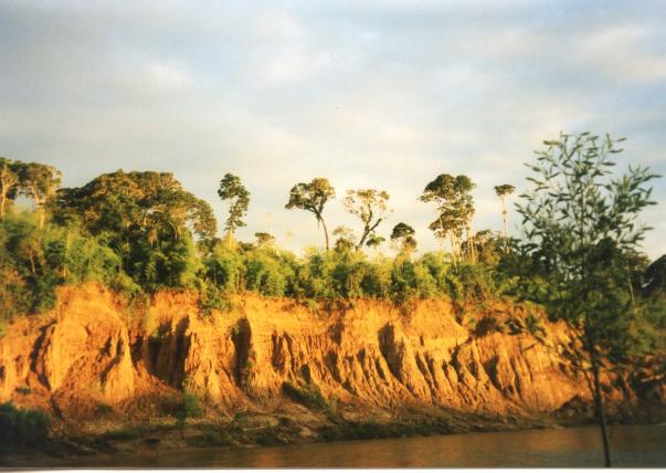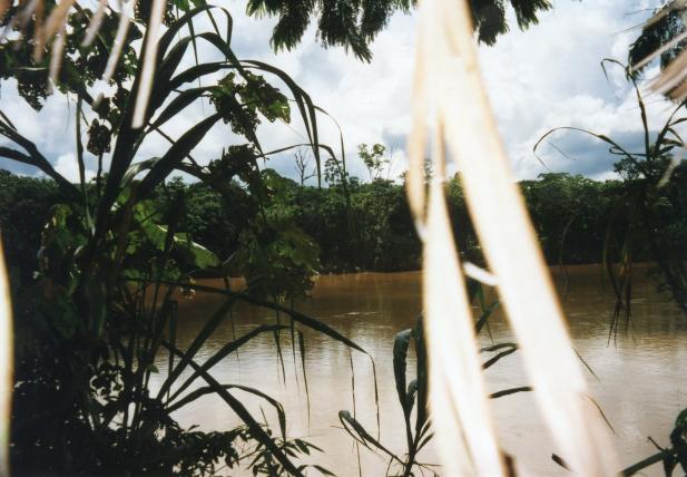 Bald schon schiebt er am Rand der Lichtung die wuchernden, dunkelgrünen Blätter eines Philodendrons beiseite und taucht mit seiner kleinen Gruppe in das Grün ein. Das Dickicht verschluckt den Trupp sofort. Düsternis, stehende, modrige Luft, Mücken surren, Spinnfäden kleben im Gesicht. Edwin stapft weiter eine Anhöhe hinauf, beidseitig nun ein dichter Bambuswald. Der jetzt trockene Boden ist voller verdorrter, vergilbter Blätter. Rascheln, keckern. Totenkopfäffchen hangeln sich durch die beweglichen Stängel. Von der Anhöhe aus fällt der Blick auf den trüben Fluss und in die Krone eines Cecropia-Baums. Das sei eine typische Pionierpflanze, erklärt Edwin. Er identifiziert das Wollknäuel im Geäst als Zweifingerfaultier.