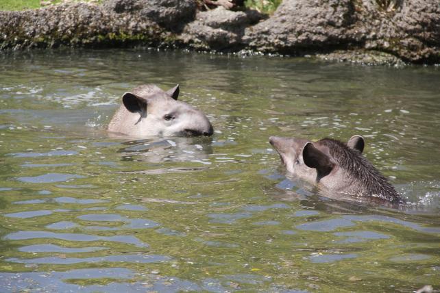 Keine Chance, den grossen, eigentümlichen Einzelgänger zu sehen, der kleine, sich schlängelnde Pfade durch den Wald anlegt. Dort, wo man vor lauter Pflanzen nur knapp die Hand vor sich sieht und im Schlamm versinkt, lebt der braune Säuger mit weisslichen Fellanteilen am länglichen Kopf heimlich. Mühelos durchschwimmt er Flüsse. Das Fell von Jungtieren ist braun und von weissen Strichen durchzogen. Sie dienen vermutlich der Auflösung von Konturen. «Ein Schutz vor dem Jaguar», sagt Edwin.
