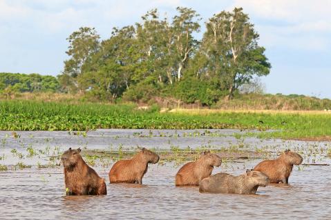 Sumpfige Seen, so weit das Auge reicht. Dazwischen Landerhebungen mit vielen Erdhügeln. Sie entpuppen sich bei näherem Hinsehen als ruhende Wasserschweine oder Capybaras, die wie übergrosse Meerschweinchen aussehen. Dazwischen reglose Kaimane, als wären sie aus Plastik. Am Rand einer Viehweide, wo Bäume wachsen, bleibt Victor stehen, zeigt ins Astwerk und ruft: «Ein Tamandua!» Der Kleine Ameisenbär, der da schläfrig aus dem Astwerk blickt, scheint ein Bindeglied zu sein zwischen dem am Boden lebenden Grossen Ameisenbären und dem Zwergameisenbären, der ausschliesslich in Bäumen lebt.