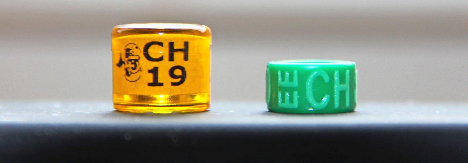 Wenn eine Taube zugeflogen ist und sie eingefangen werden kann, ist es wichtig, sich den Fussring genau anzusehen. Mit den Angaben darauf kann man feststellen, ob es sich um eine Brieftaube oder eine Rassetaube handelt. Bei den Brieftauben steht das «CH» als Ländercode, die Nummer der Taube und der Jahrgang. Ausserdem ist noch das Signet vom Internationalen Brieftaubenverband abgebildet.