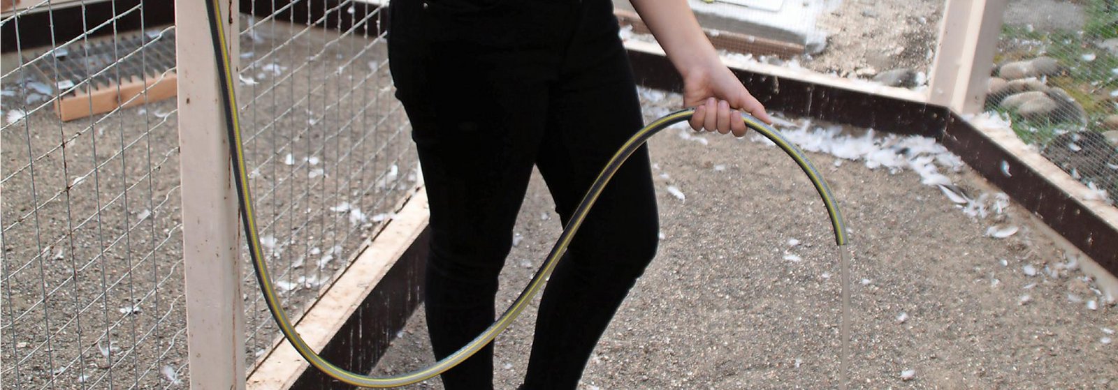 Am Anfang habe ich jedes Mal den Gartenschlauch ausgerollt und damit die Badewannen gefüllt. Das war zwar eine Lösung, hatte aber den Nachteil, dass der Schlauch zunächst abgewickelt und dann wieder aufgerollt werden musste. Eine Alternative wäre es gewesen, direkt in die Volieren eine Wasserleitung zu legen. Das wiederum wäre nur mit grossem Aufwand möglich gewesen, sodass auch dies nicht in Frage kam.
