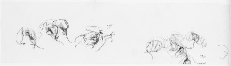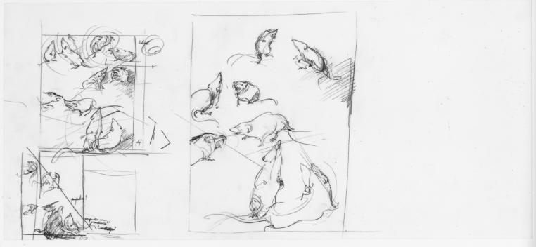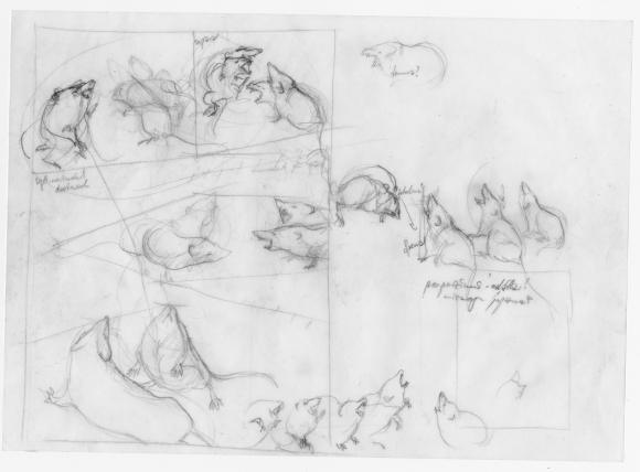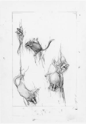 Zu erwähnen sind natürlich auch die vier Essays, welche die Zeichnungen begleiten und die vordere Hälfte des Buches ausmachen. Verfasst haben die Texte die vier Herausgeber. Jeder von ihnen beleuchtet auf originelle und teilweise überraschende Weise einen anderen Aspekt der Zeichnungen. Ihnen allen gemein ist aber, dass sie die ausserordentliche Bewegtheit der kleinen Nager ins Zentrum stellen. So weist zum Beispiel Markus Wild eingangs darauf hin, dass der deutsche Mönch und Universalgelehrte Albertus Magnus aus dem 12. Jahrhundert im spärlichen Licht eines nächtlichen Klosters wohl einer Sinnestäuschung unterlegen haben muss, als der glaubte, bei einer Tonfigur einer Maus, die eine Kerze hält, handle es sich um ein echtes Tier. Genau mit diesem Effekt spielten auch Gredigs Zeichnungen, so dass man wahrlich glauben könne, die kleinen Nagetiere bewegten sich wirklich.