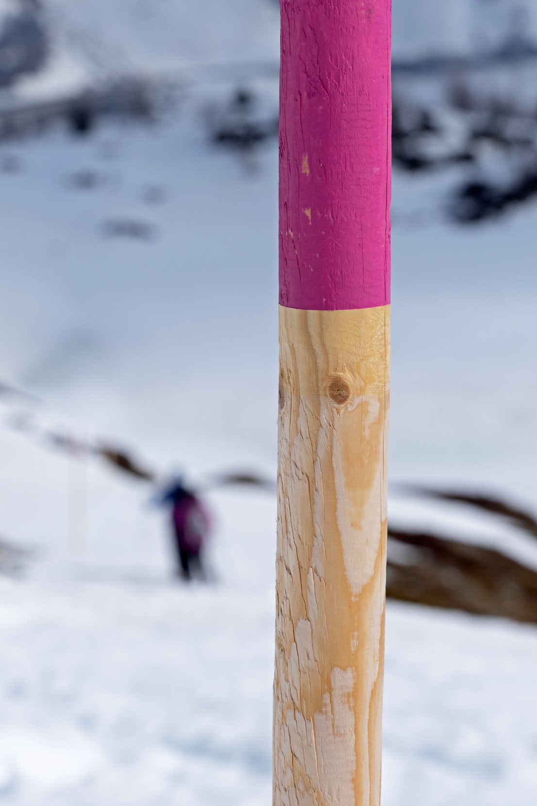 Es gibt zwei Arten von pinken Winterwanderweg-Schildern – einmal jenes für präparierte Wanderwege und das andere für Schneeschuhrouten. Die Pink beschilderten Winterwanderwege werden regelmässig präpariert und kontrolliert.